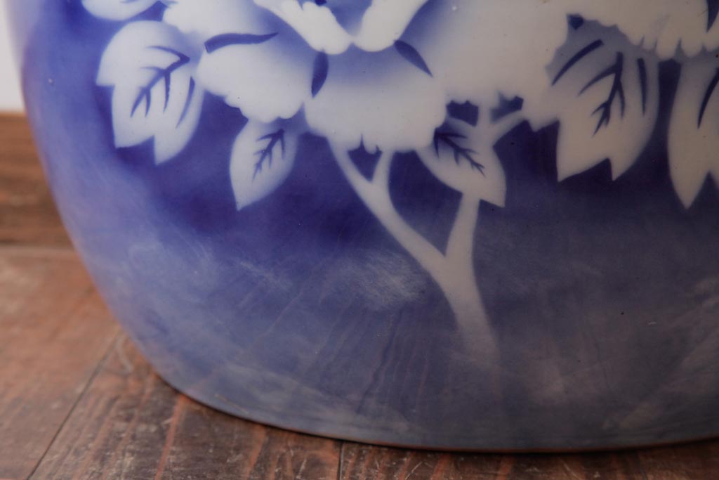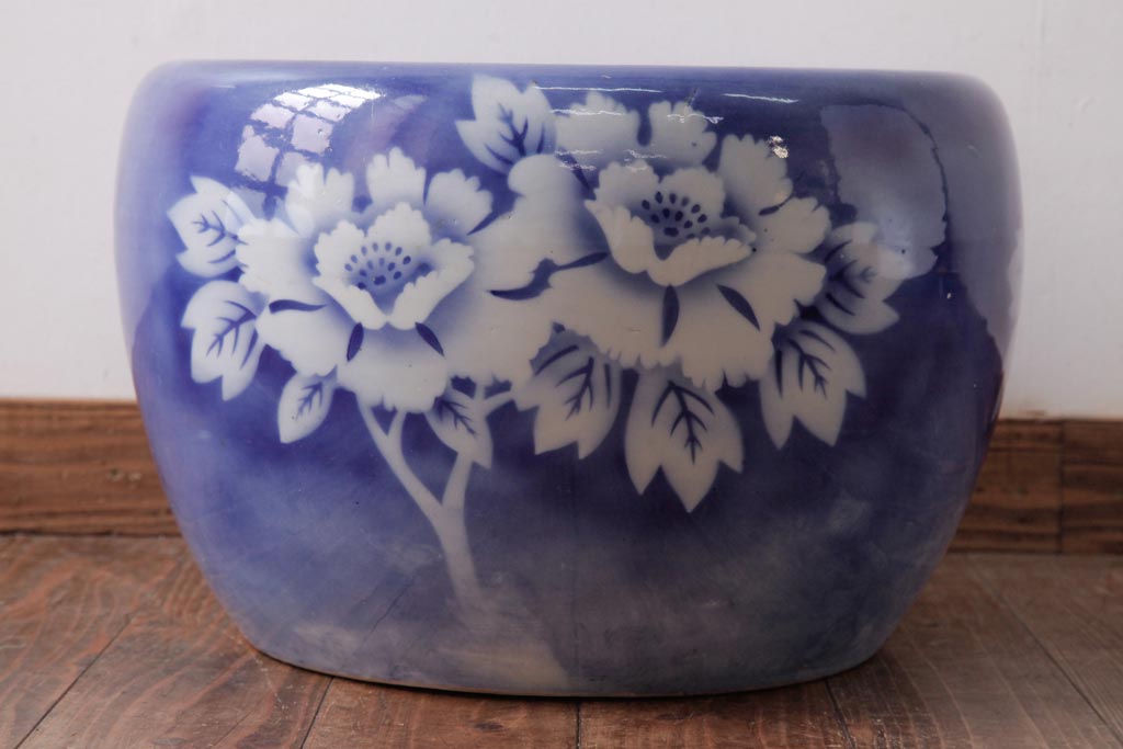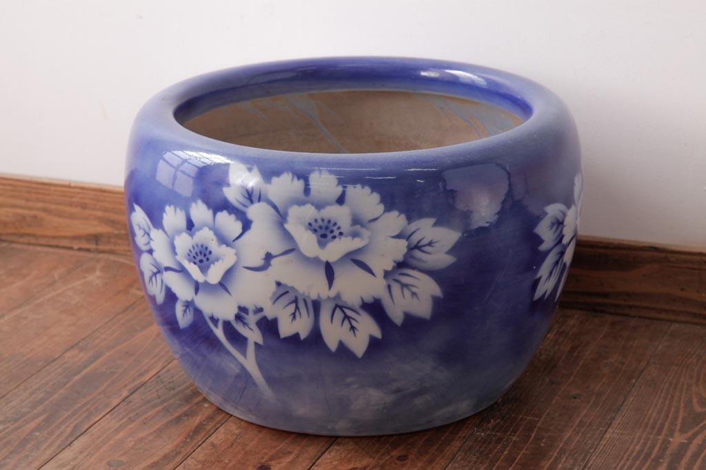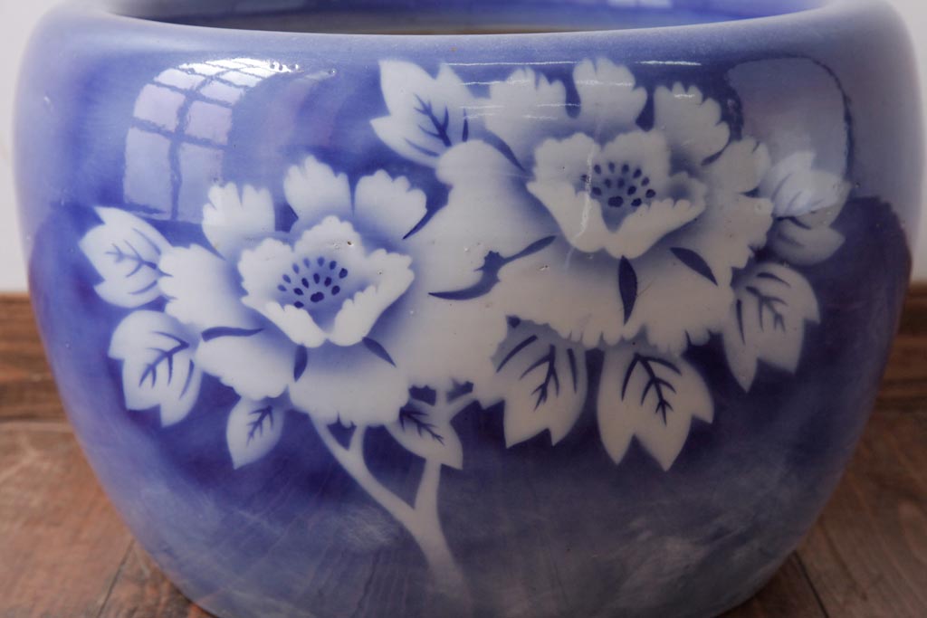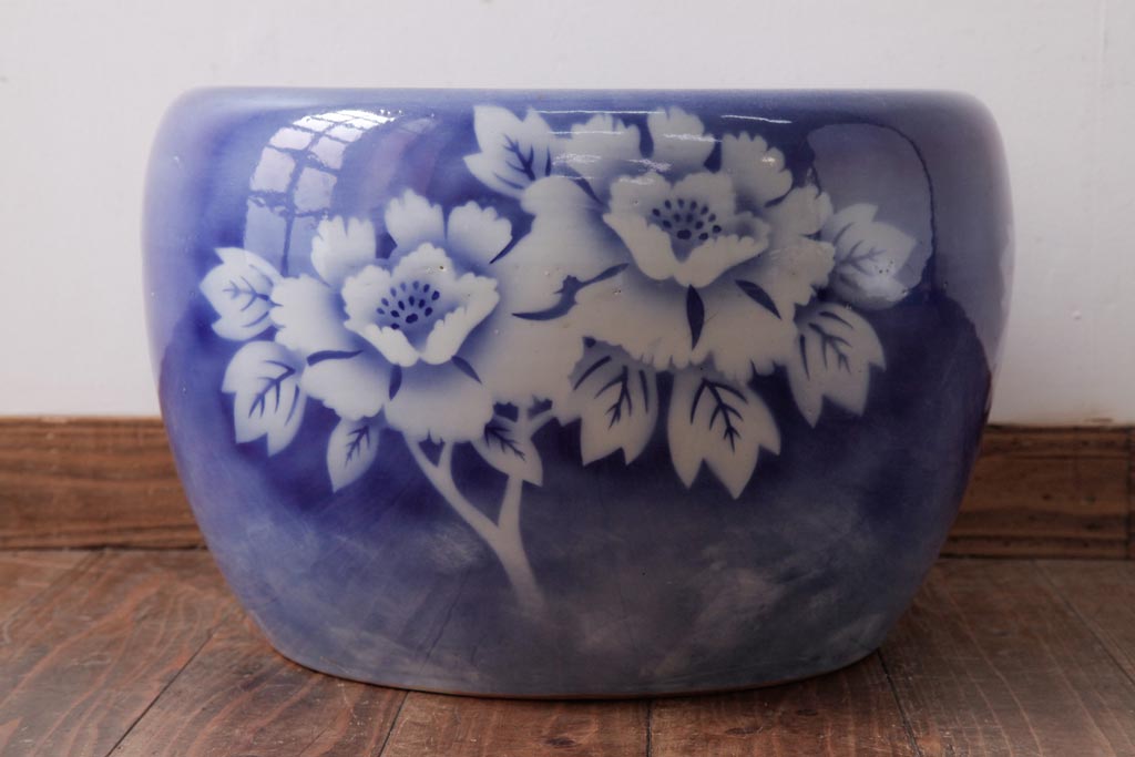 アンティーク雑貨 昭和初期 大輪の花が目を引く瀬戸火鉢(R-038408)です。