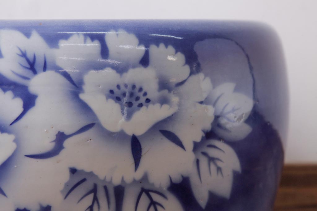 アンティーク雑貨 昭和初期 大輪の花が目を引く瀬戸火鉢(R-038408)
