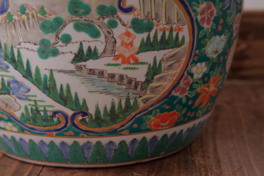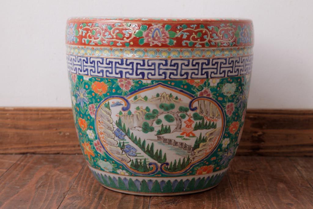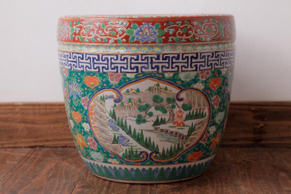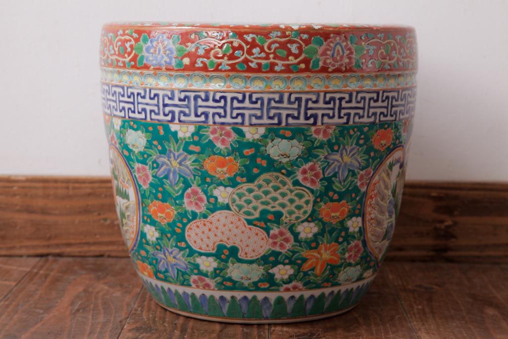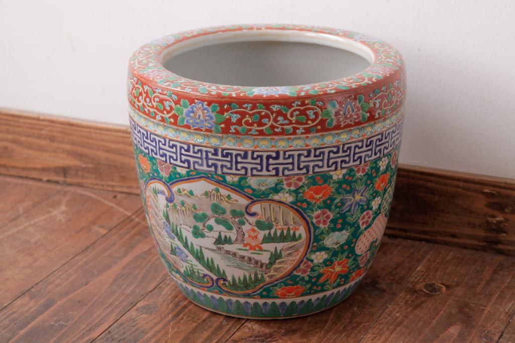 アンティーク雑貨 昭和初期 彩り豊かな十錦手火鉢(瀬戸火鉢)(R-038412)