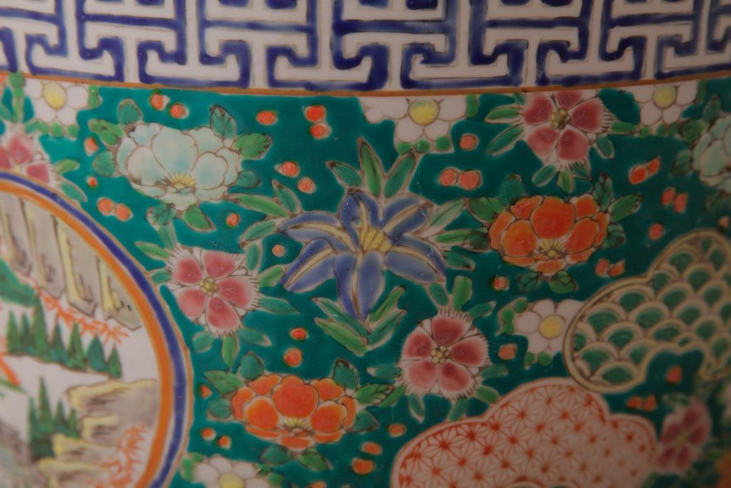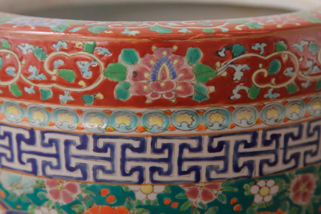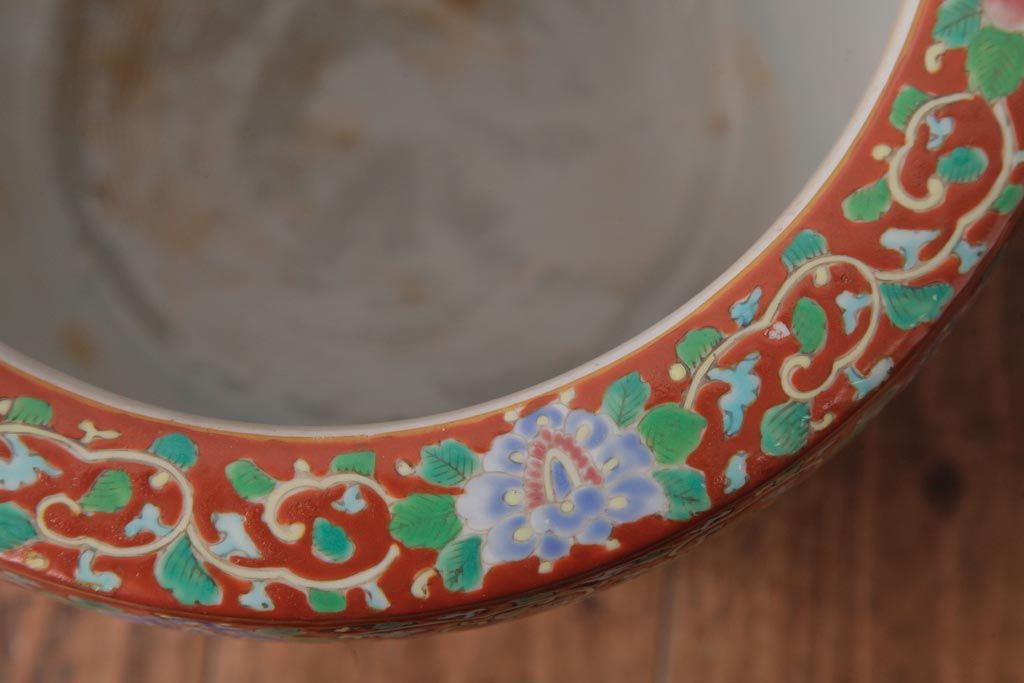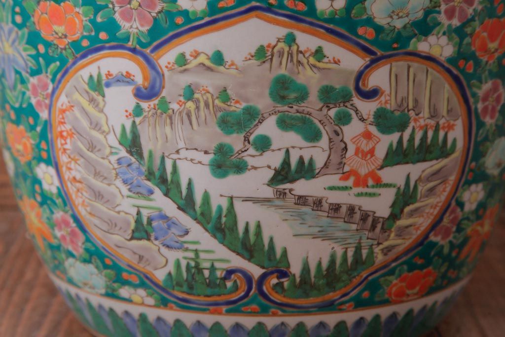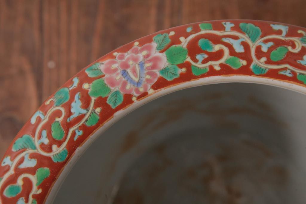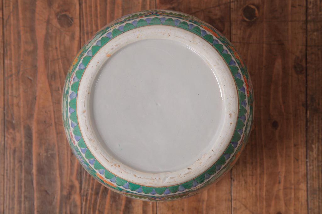 アンティーク雑貨 昭和初期 彩り豊かな十錦手火鉢(瀬戸火鉢)(R-038412)