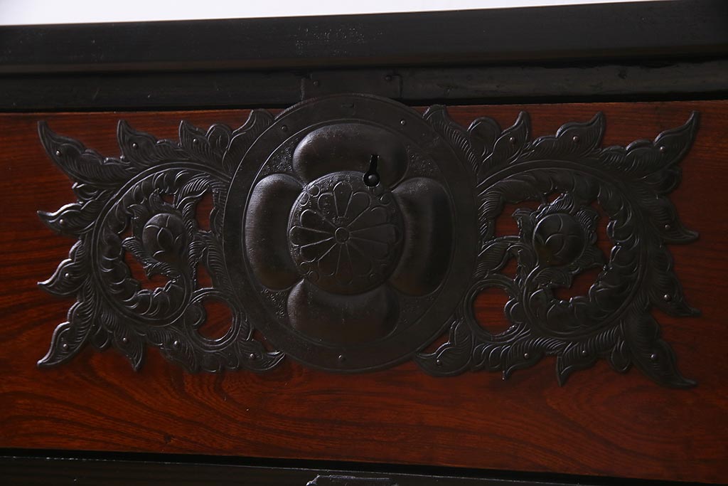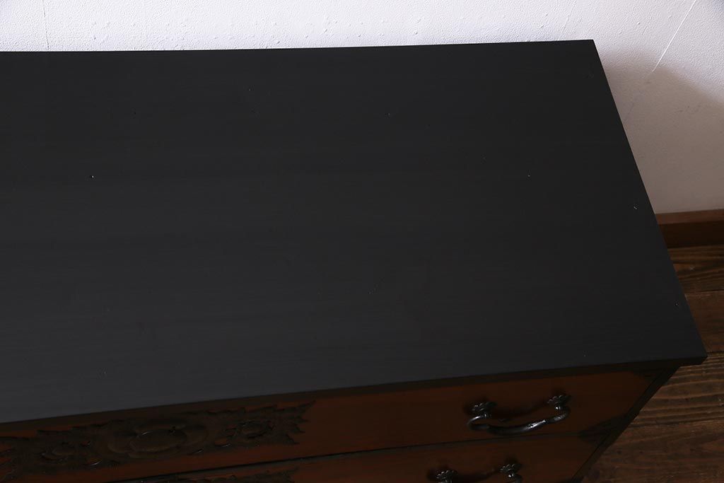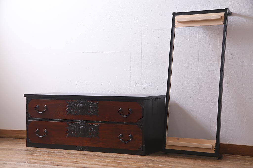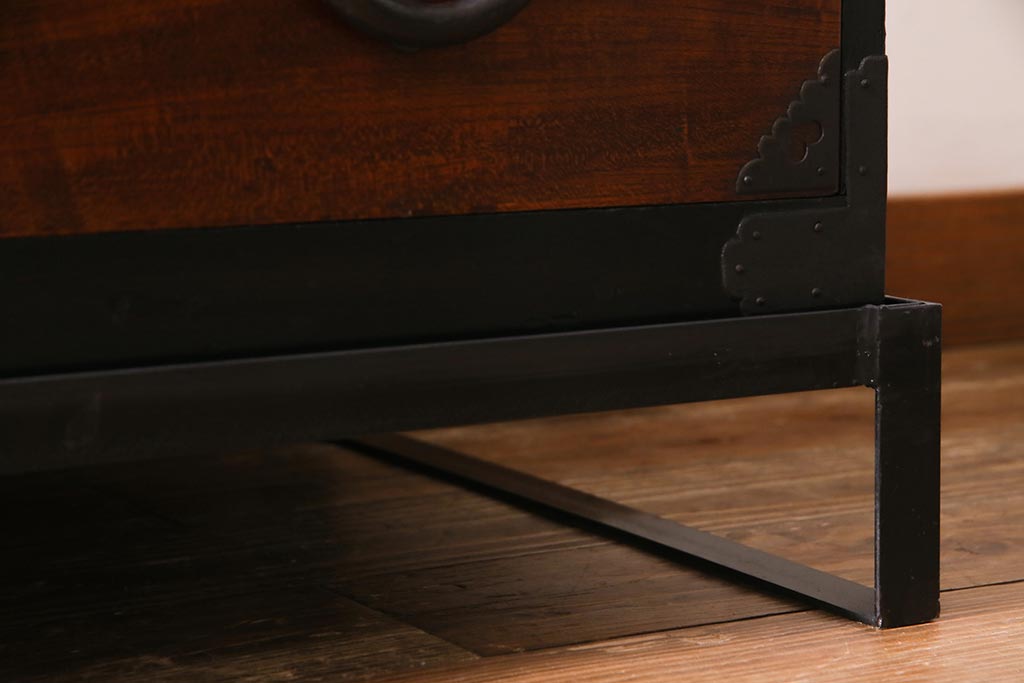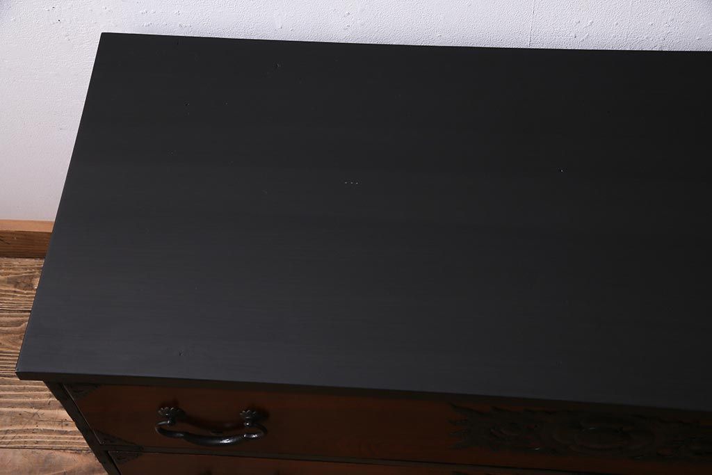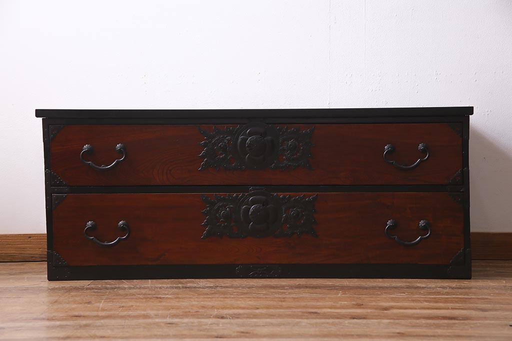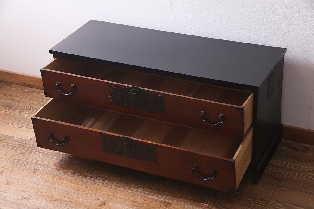 和箪笥> 衣装箪笥 > アンティーク家具 前面ケヤキ材漆塗り 台付きリメイク 和モダンな仙台箪笥ローチェスト(ローボード、引き出し、時代箪笥)(R-038348)