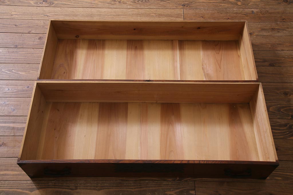 和箪笥 > アンティーク家具 前面ケヤキ材漆塗り 台付きリメイク 和モダンな仙台箪笥ローチェスト(ローボード、引き出し、時代箪笥)(R-038348)