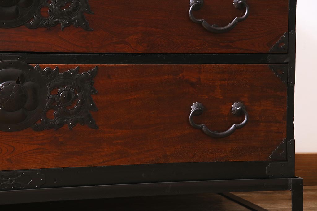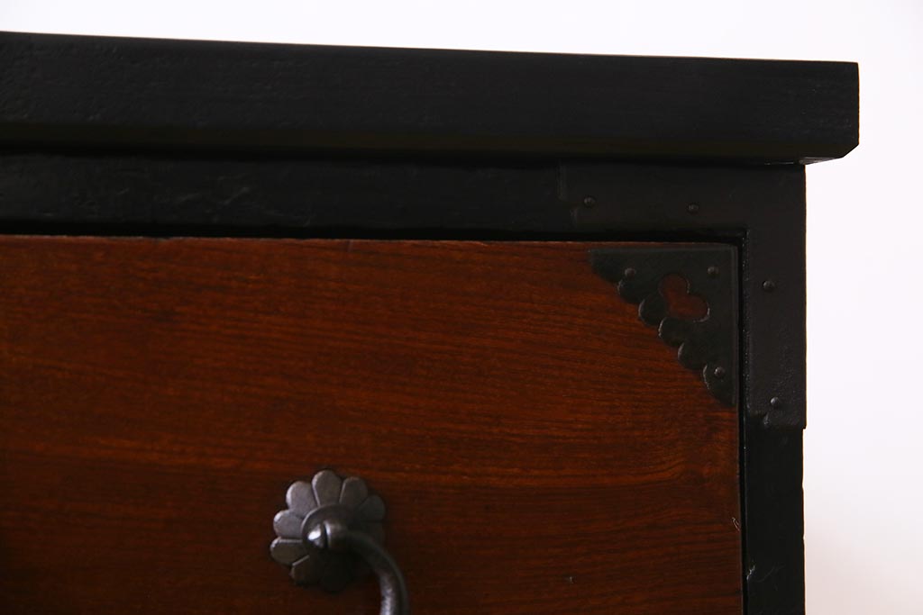 チェスト・引き出し> ローチェスト > アンティーク家具 前面ケヤキ材漆塗り 台付きリメイク 和モダンな仙台箪笥ローチェスト(ローボード、引き出し、時代箪笥)(R-038348)