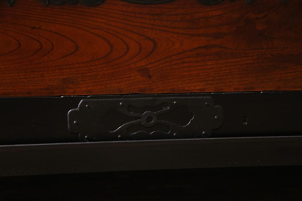 キャビネット・戸棚> テレビ台・ローボード > アンティーク家具 前面ケヤキ材漆塗り 台付きリメイク 和モダンな仙台箪笥ローチェスト(ローボード、引き出し、時代箪笥)(R-038348)