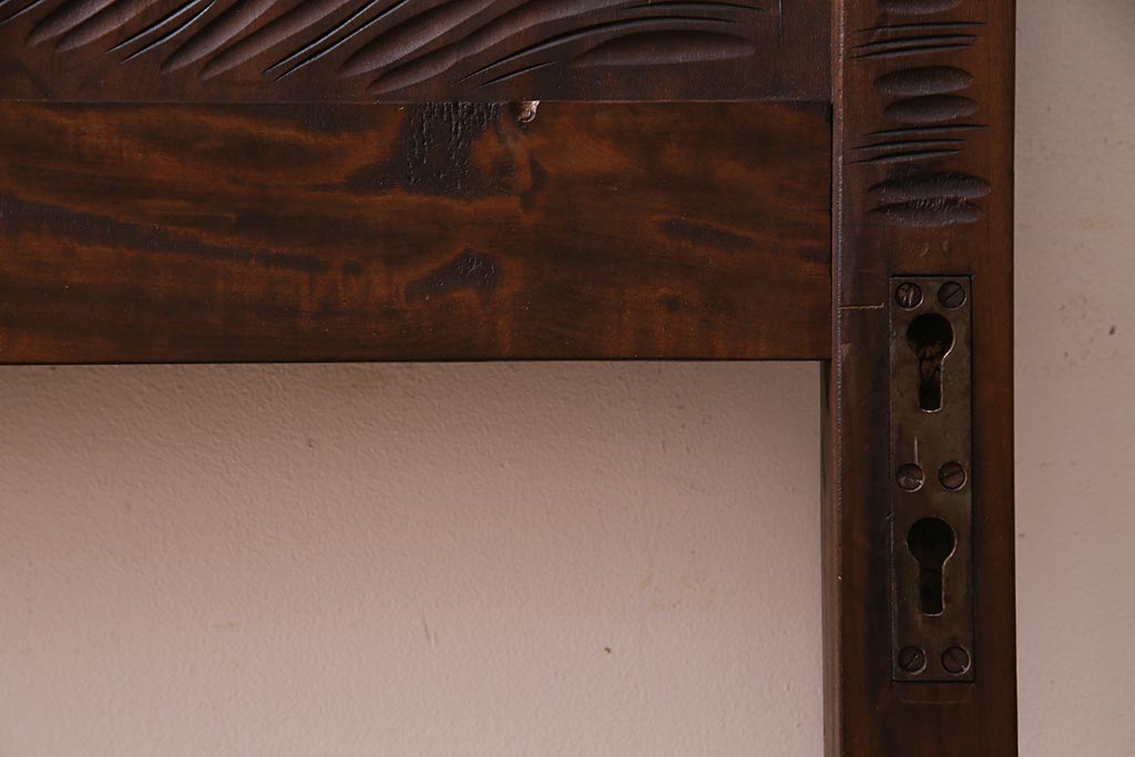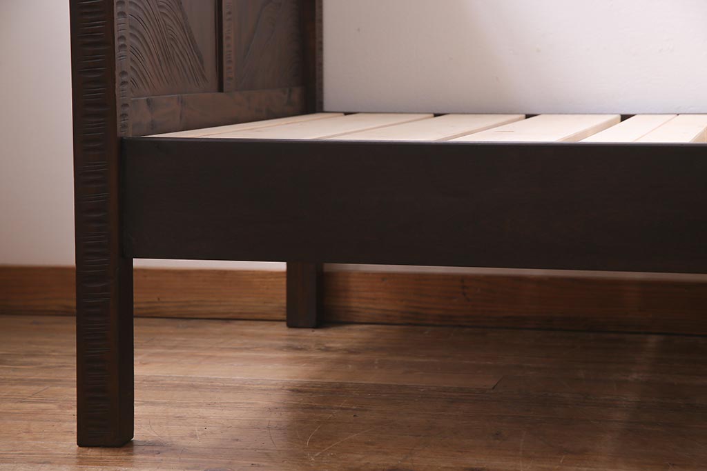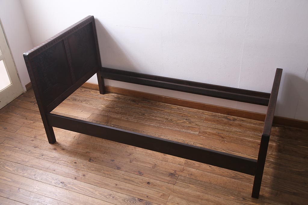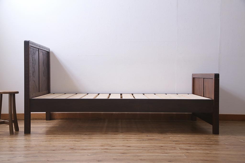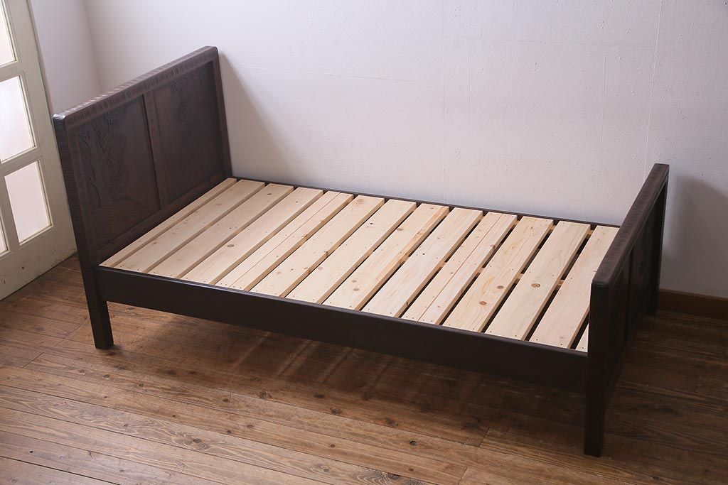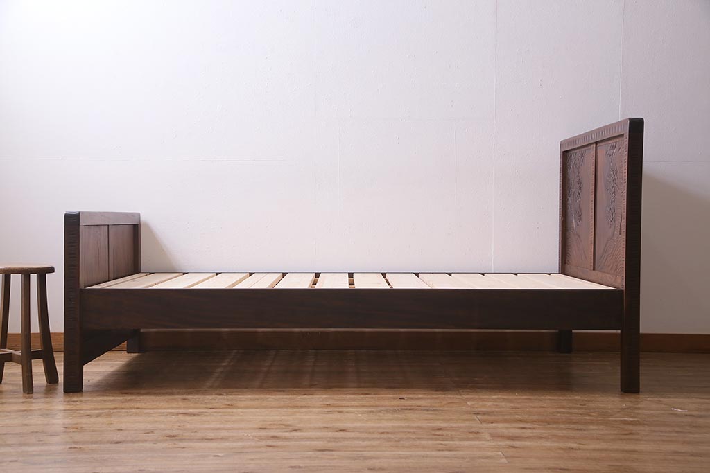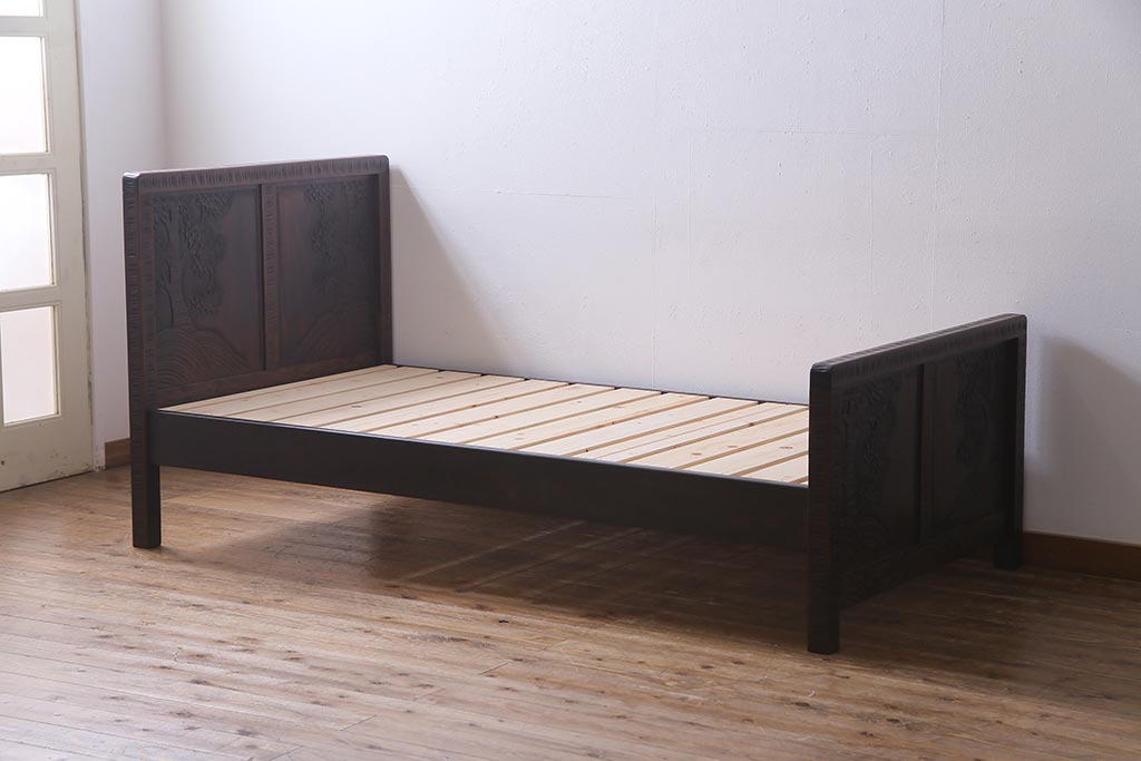 民芸家具 > ビンテージ 伝統工芸 軽井沢彫り 桜の木が彫られた木製ベッドフレーム(R-038324)