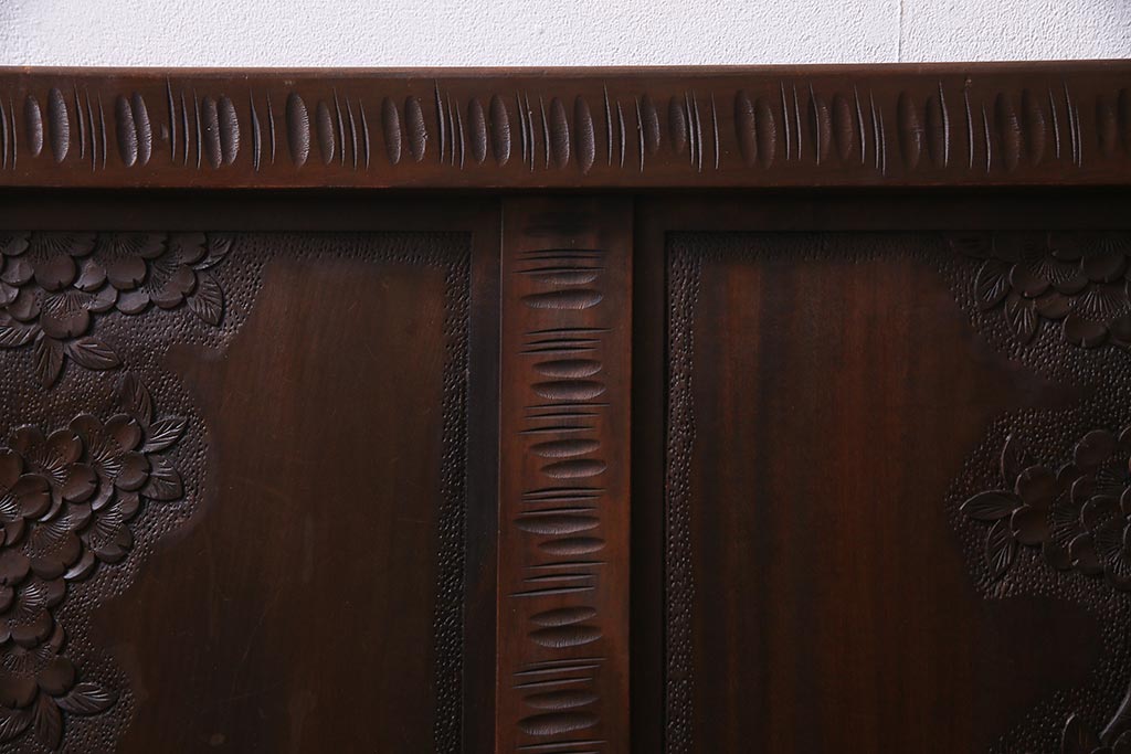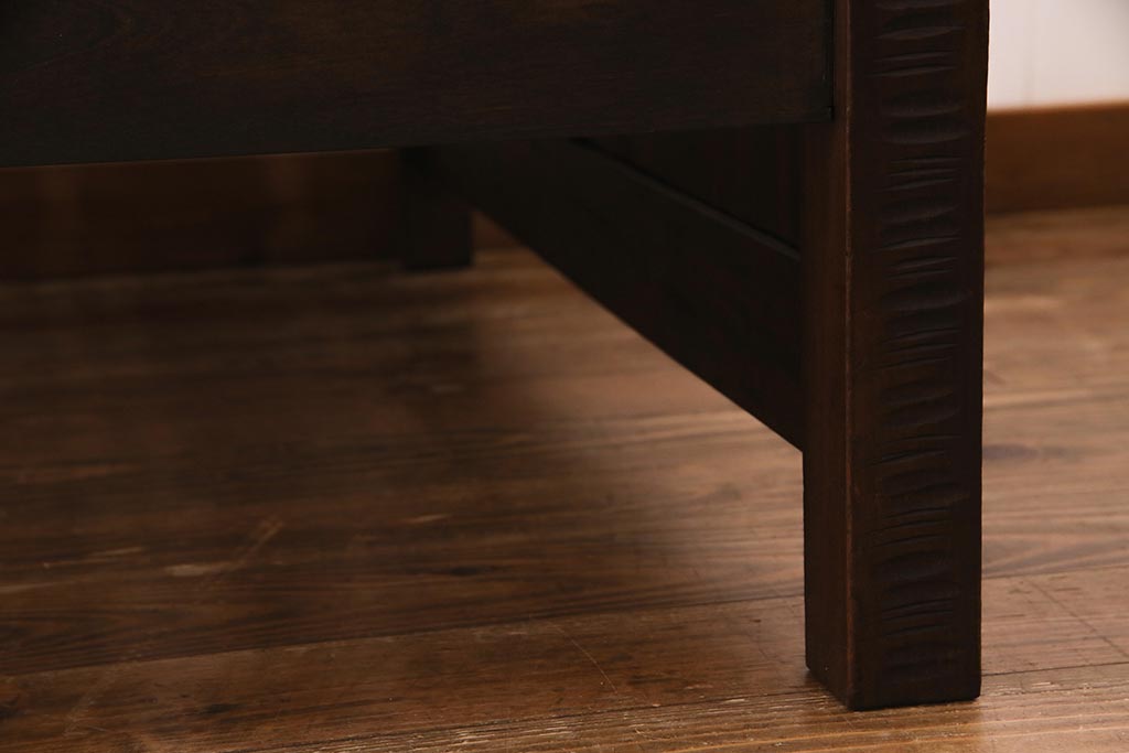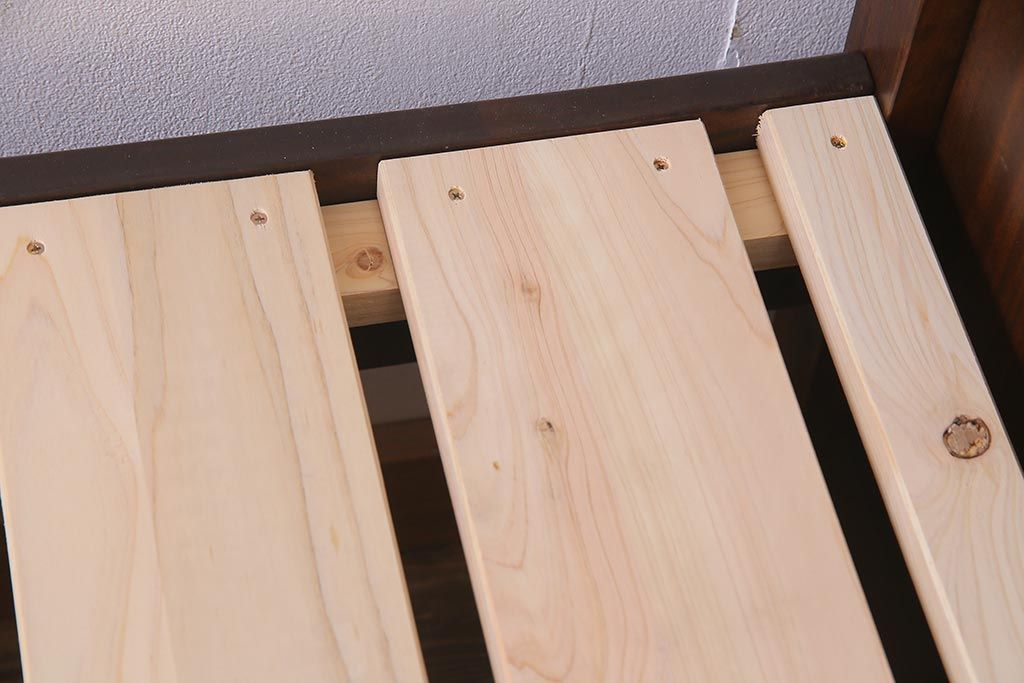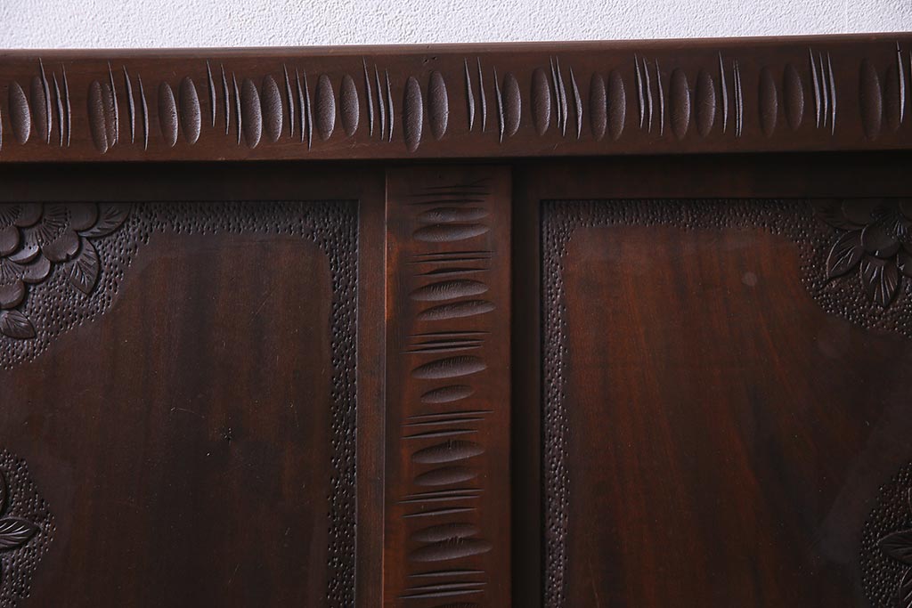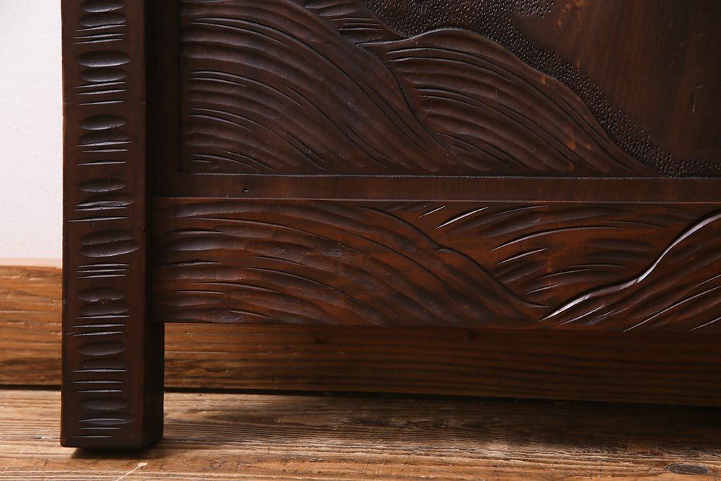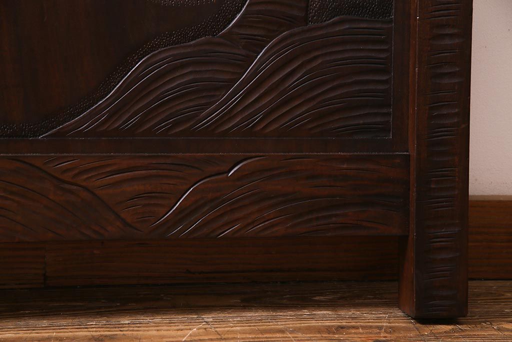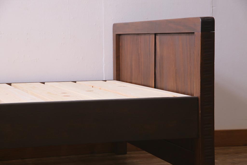 民芸家具 > ビンテージ 伝統工芸 軽井沢彫り 桜の木が彫られた木製ベッドフレーム(R-038324)