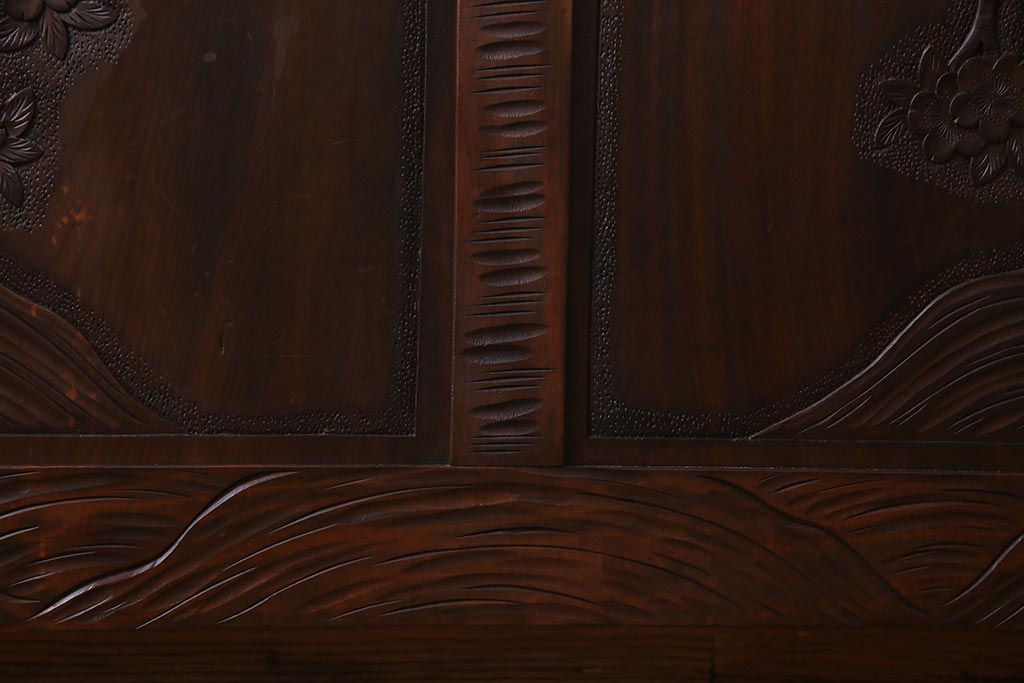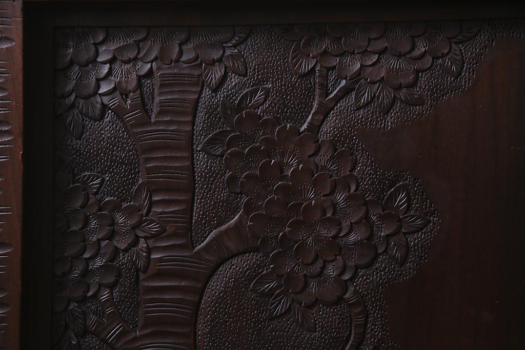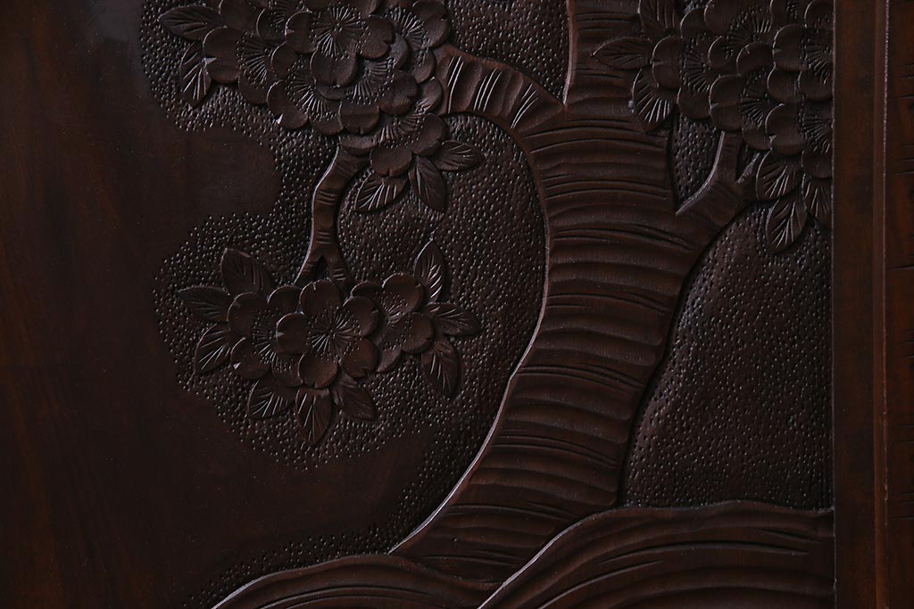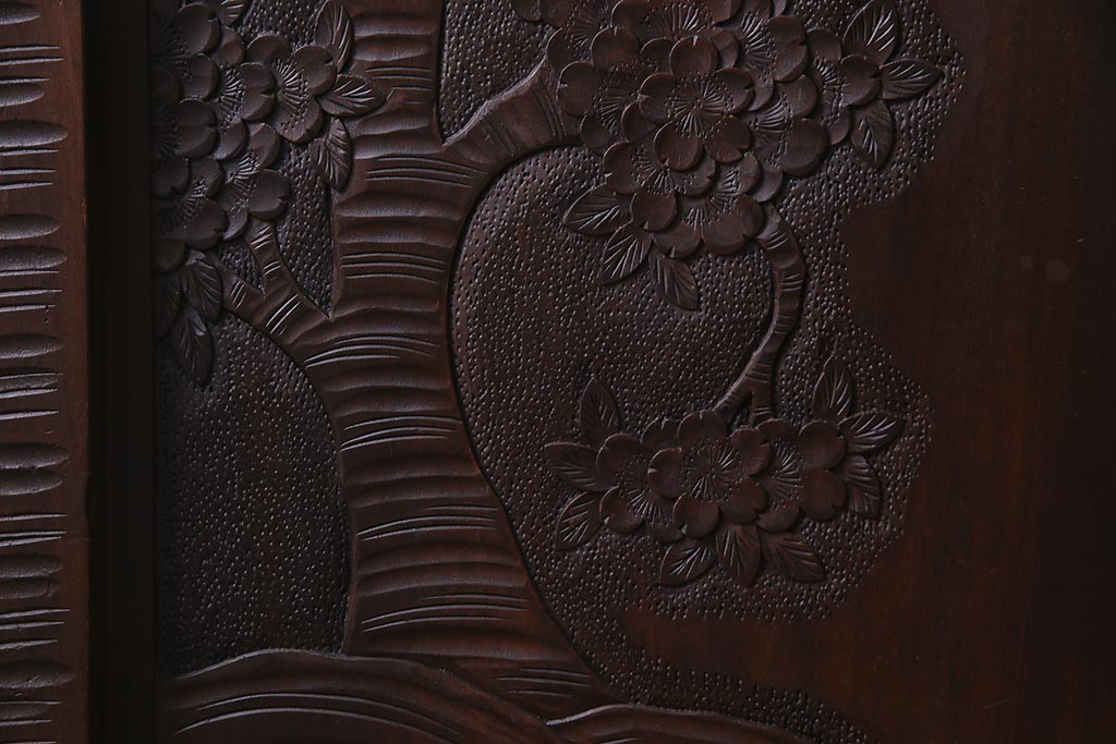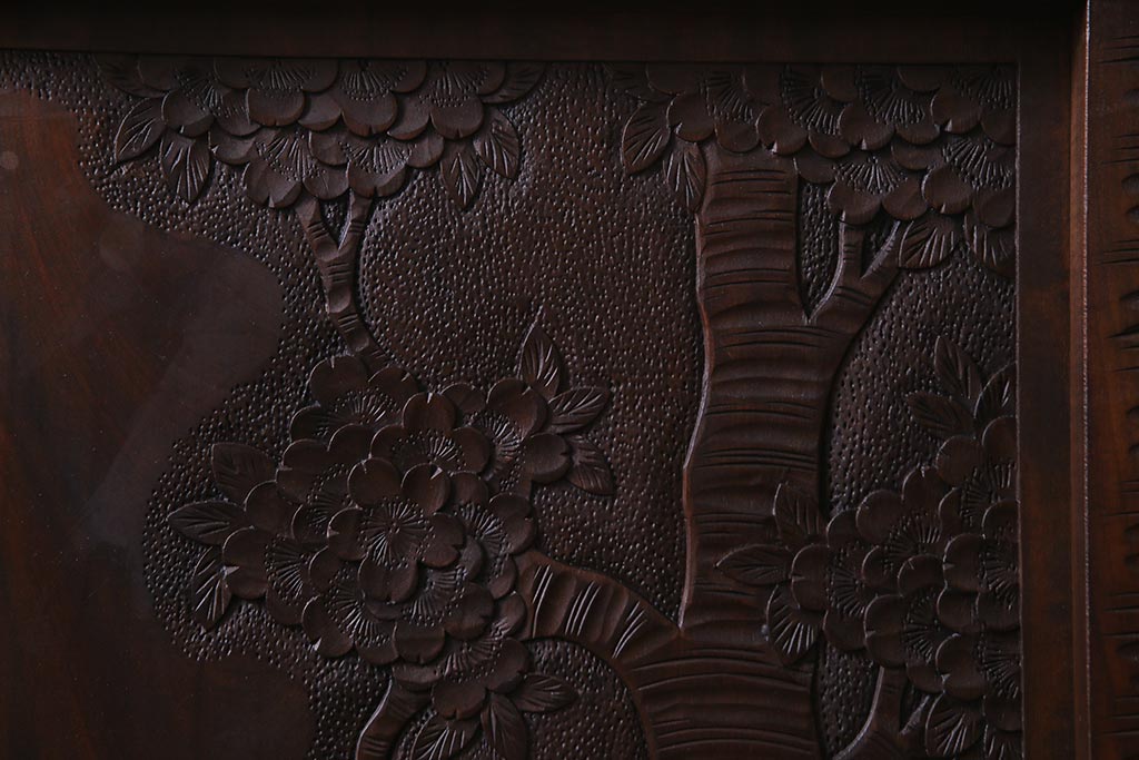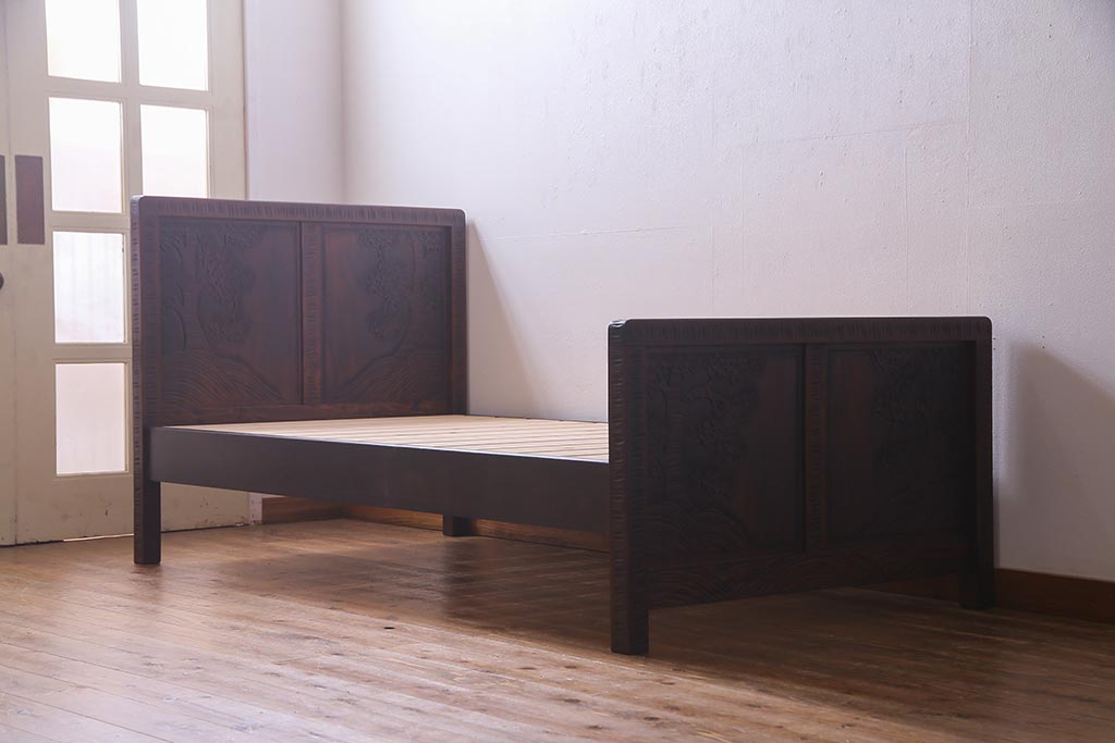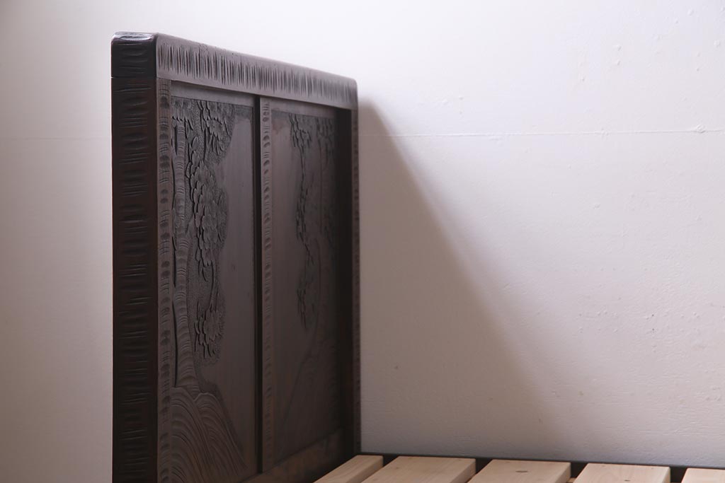 ベッド > ビンテージ 伝統工芸 軽井沢彫り 桜の木が彫られた木製ベッドフレーム(R-038324)