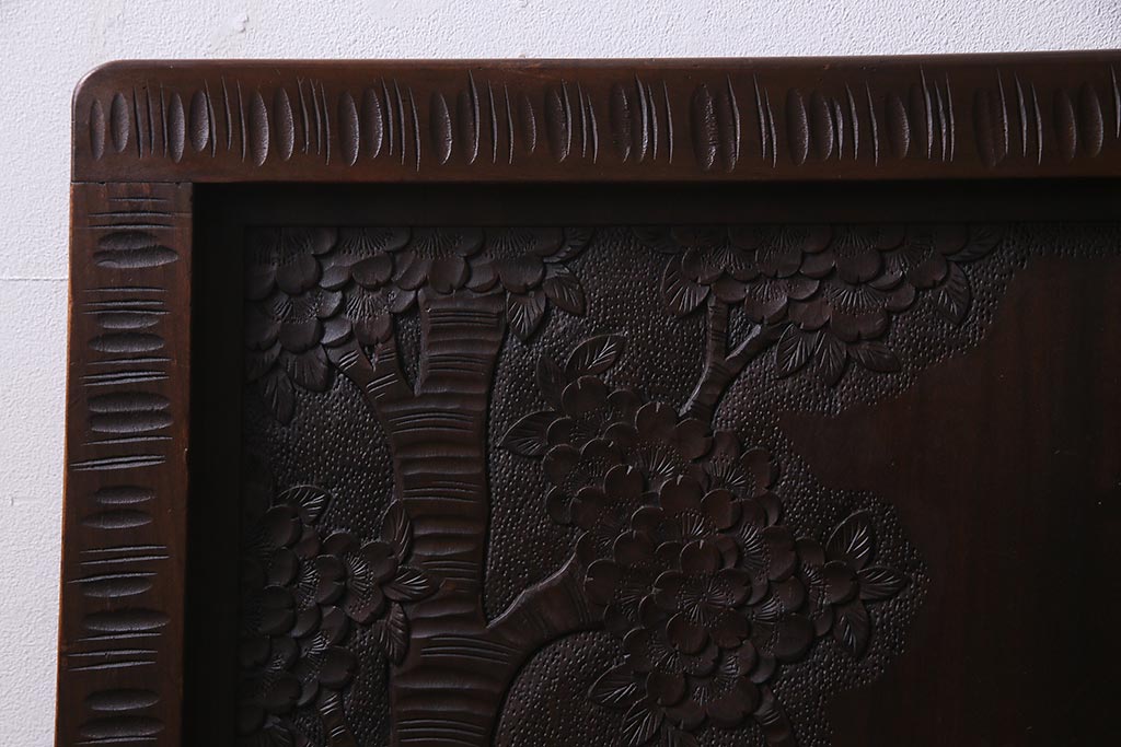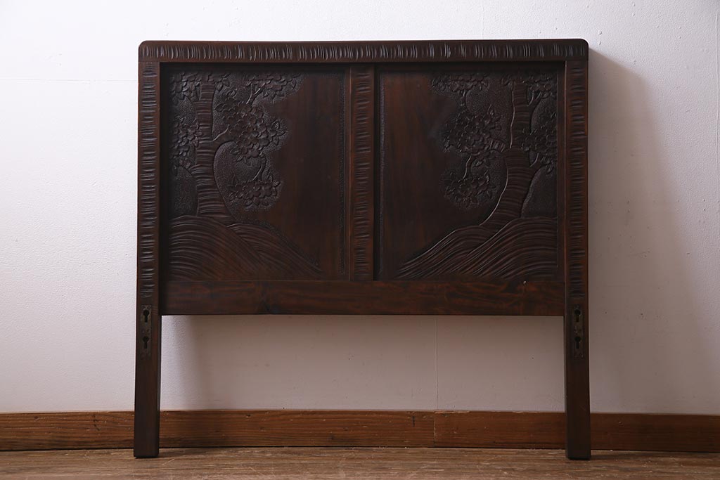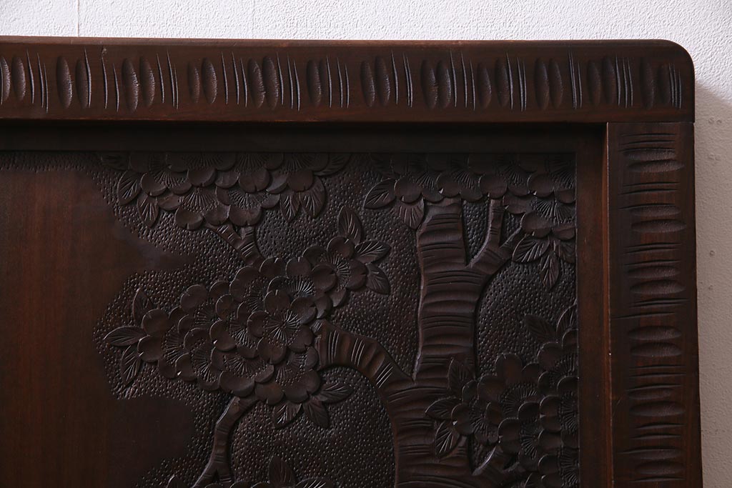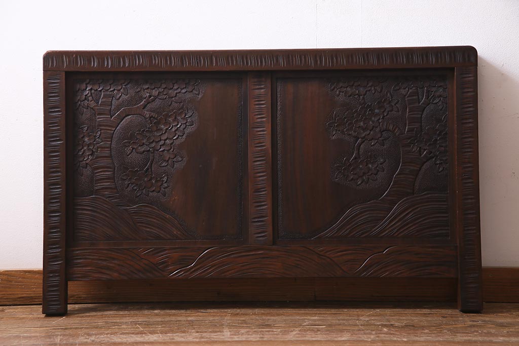 ビンテージ 伝統工芸 軽井沢彫り 桜の木が彫られた木製ベッドフレーム(R-038324)