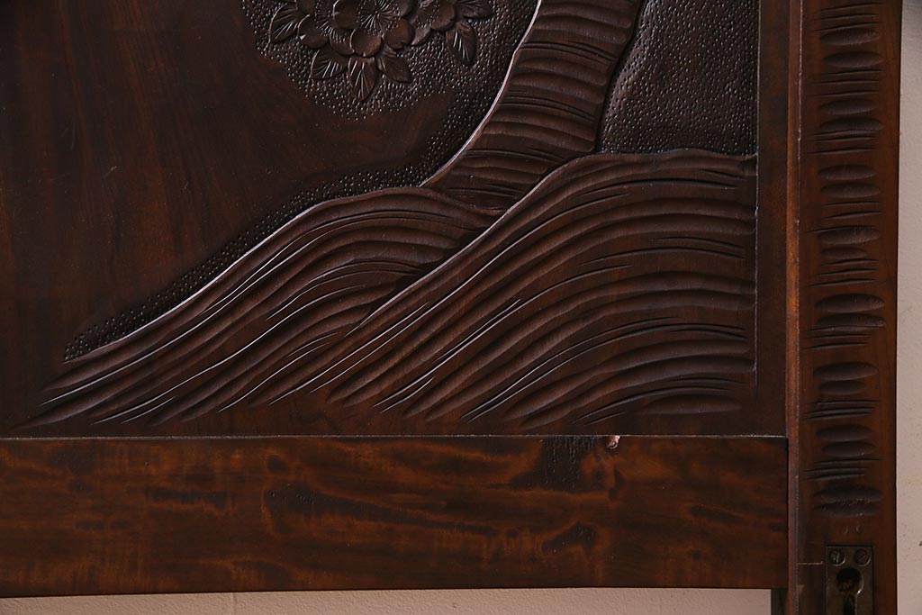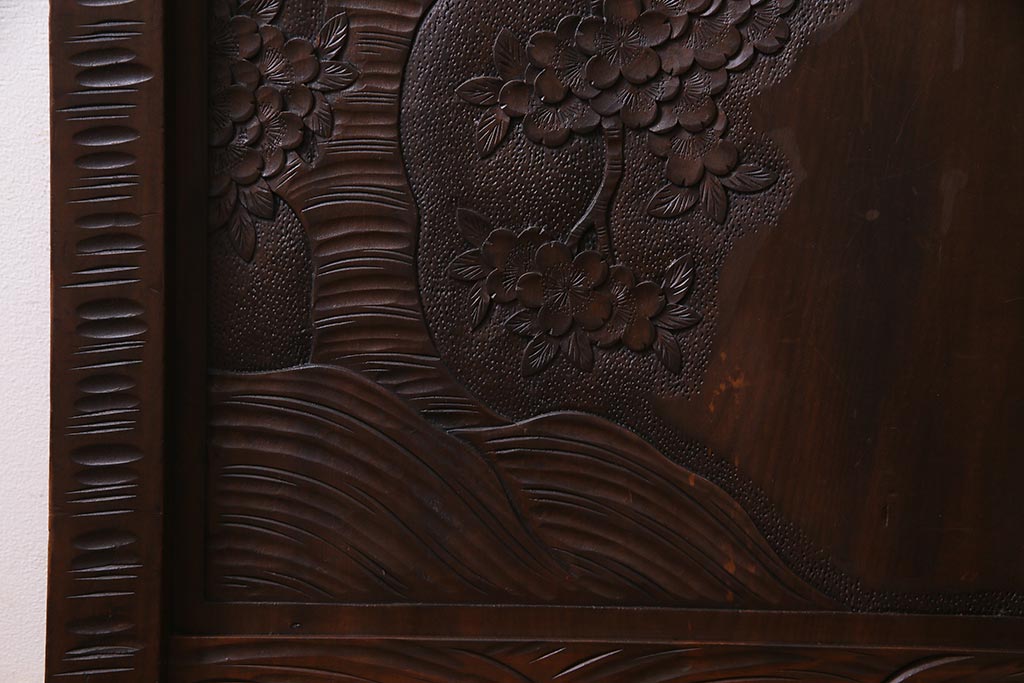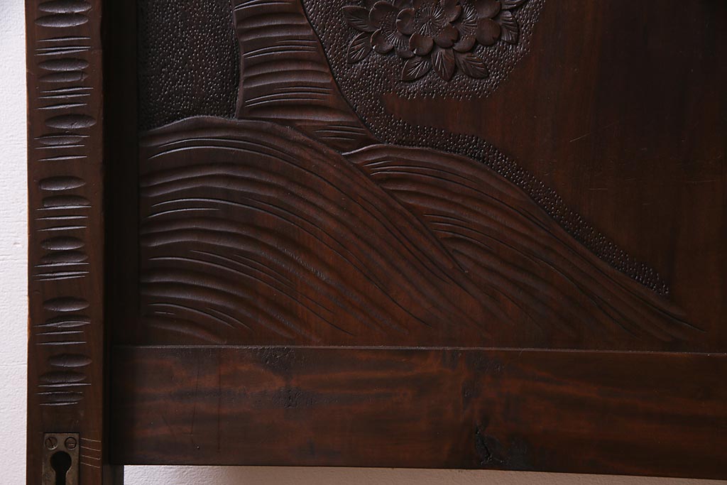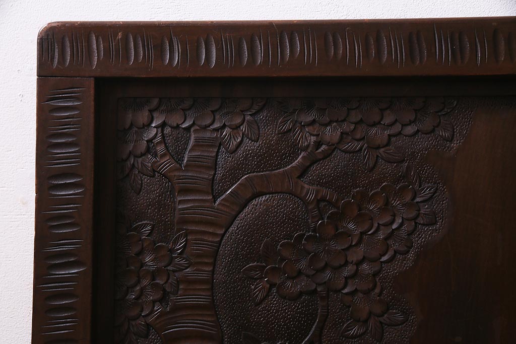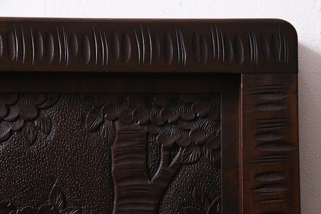 ビンテージ 伝統工芸 軽井沢彫り 桜の木が彫られた木製ベッドフレーム(R-038324)