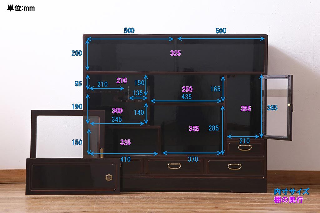 ■引き出しの内寸(小) 深さ65mm/幅185mm/奥行330mm