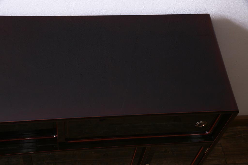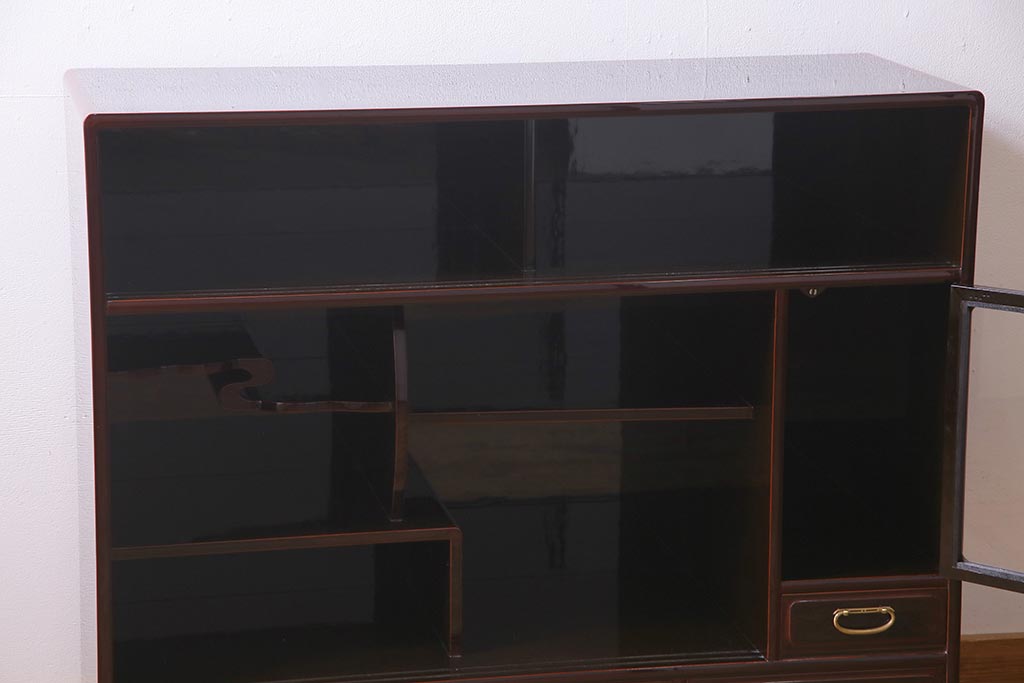棚の内部にまで厚みのある溜塗りが施されており、
