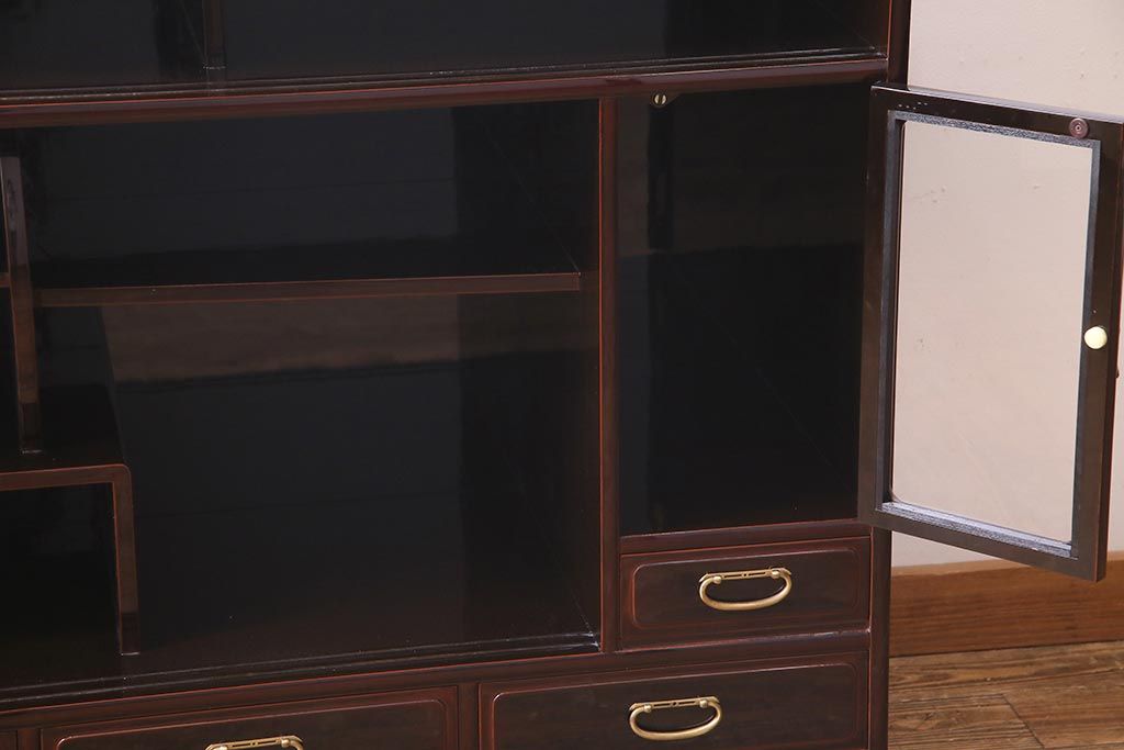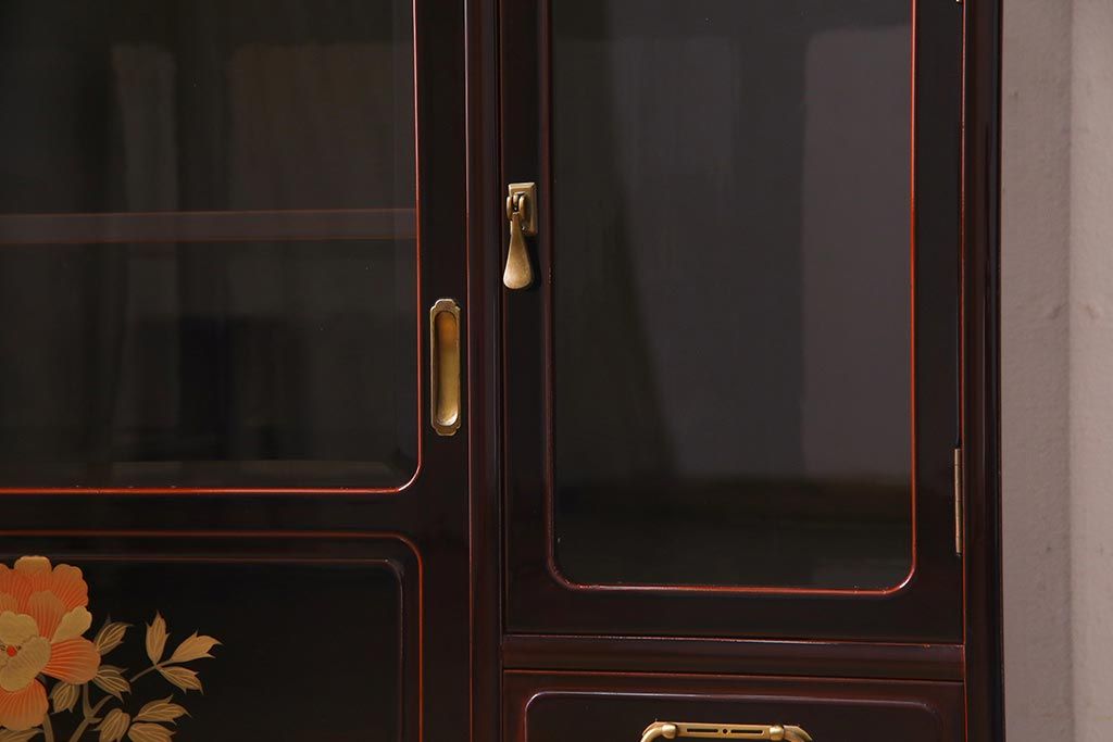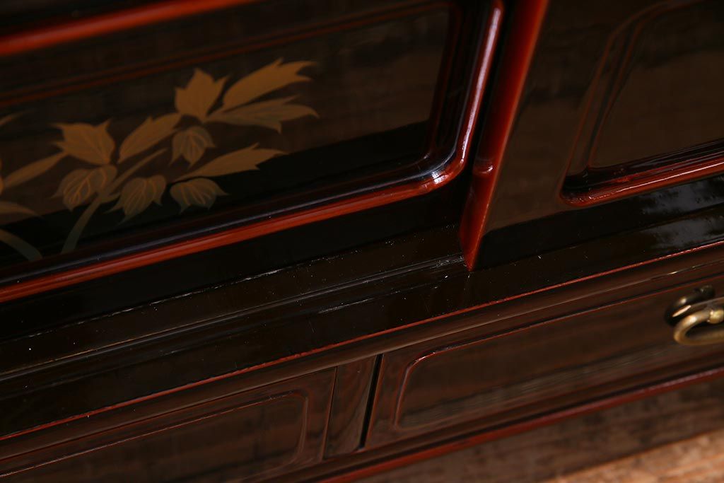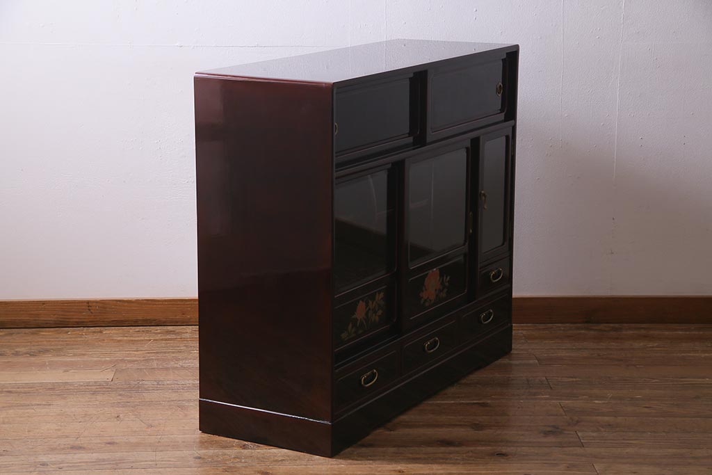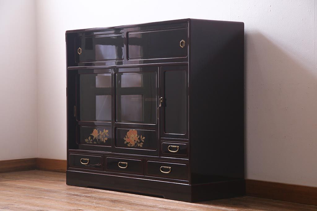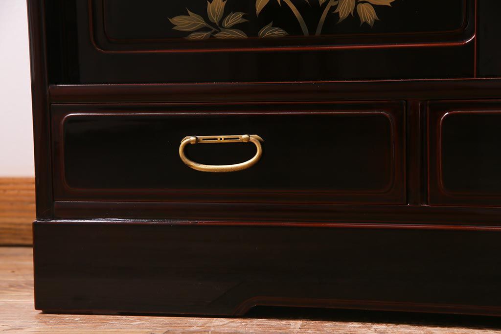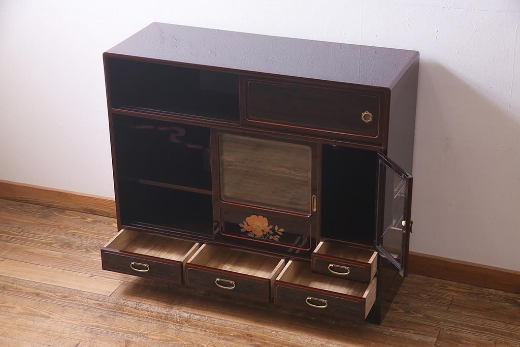 民芸家具 > 中古 工芸家具 桐材 漆・溜塗り 蒔絵の牡丹が美しい茶箪笥(タンス、飾り棚、桐箪笥、桐たんす)(定価約90万円)(R-038345)