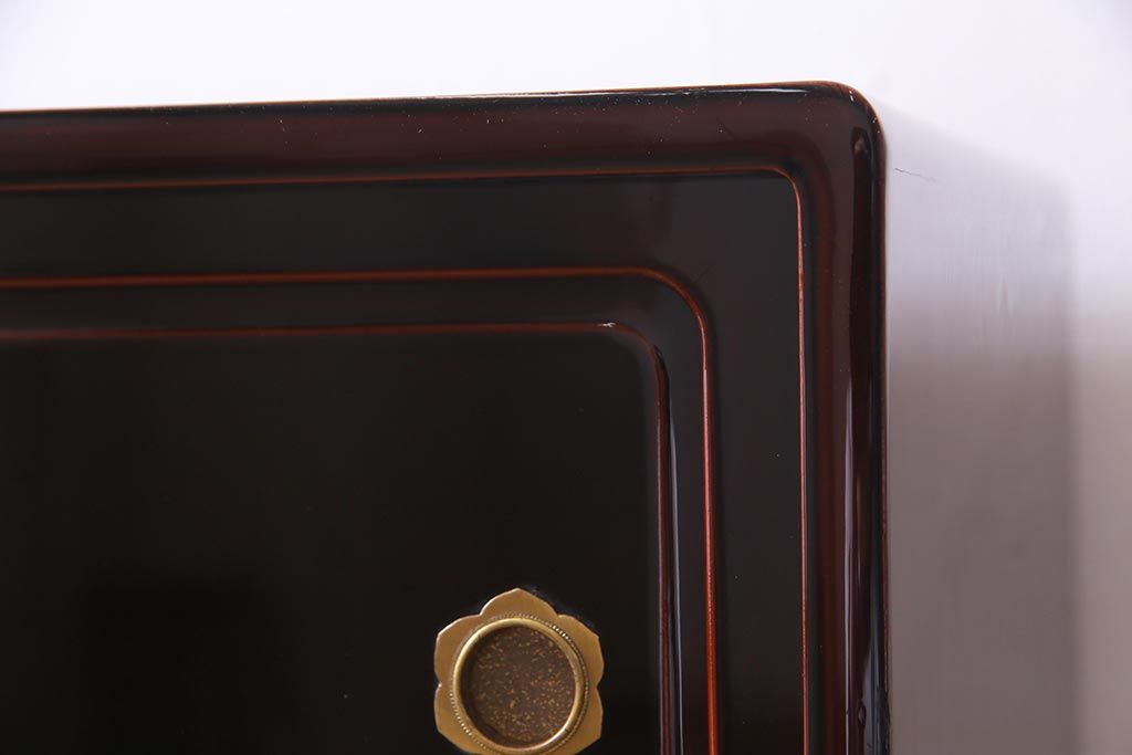 和箪笥> 茶箪笥・茶棚 > 中古 工芸家具 桐材 漆・溜塗り 蒔絵の牡丹が美しい茶箪笥(タンス、飾り棚、桐箪笥、桐たんす)(定価約90万円)(R-038345)