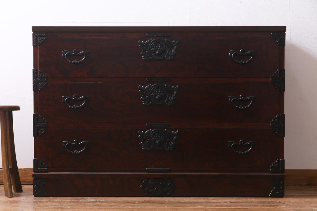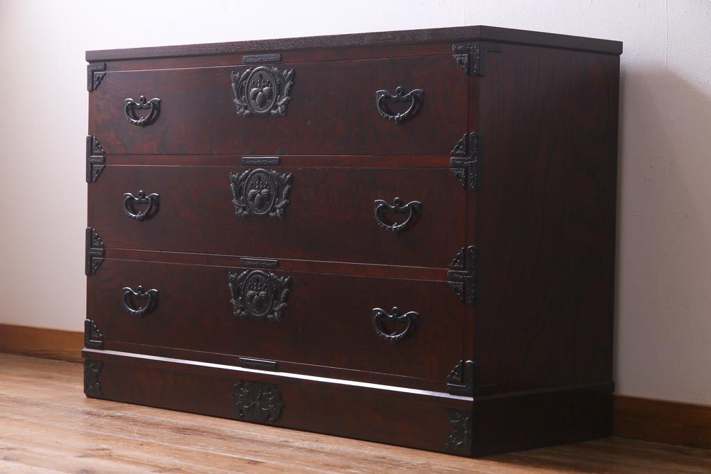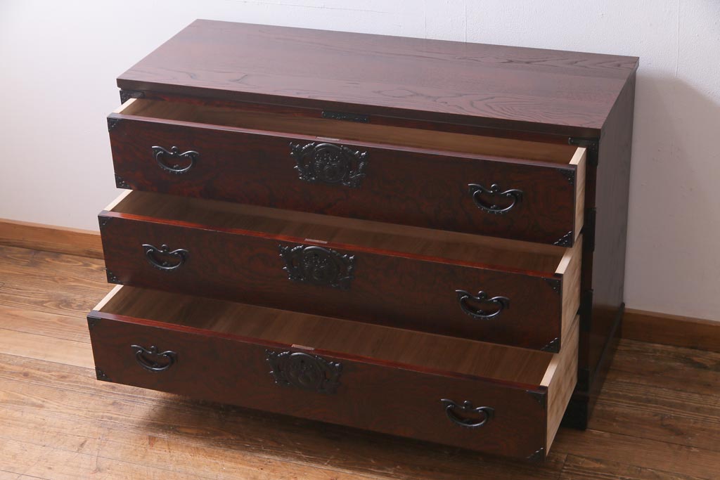 中古 岩谷堂箪笥 天板リメイク・栗無垢材 重厚かつ上品な佇まいが魅力的な衣装箪笥(引き出し、チェスト)(R-038385)