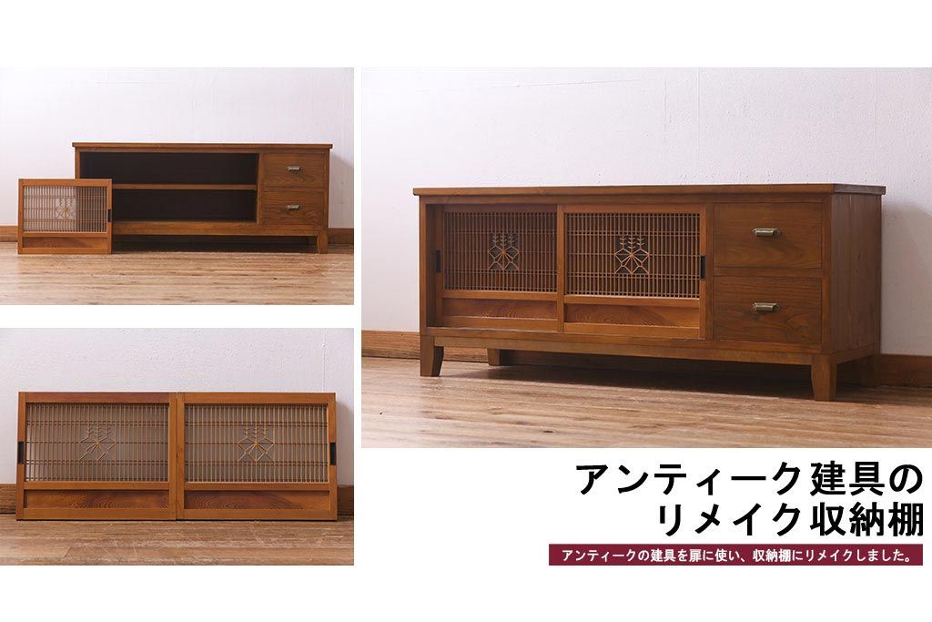 ラフジュ工房オリジナル 古建具リメイク 和の風情漂うテレビボード(ローボード、収納棚、戸棚)(R-038382)です。