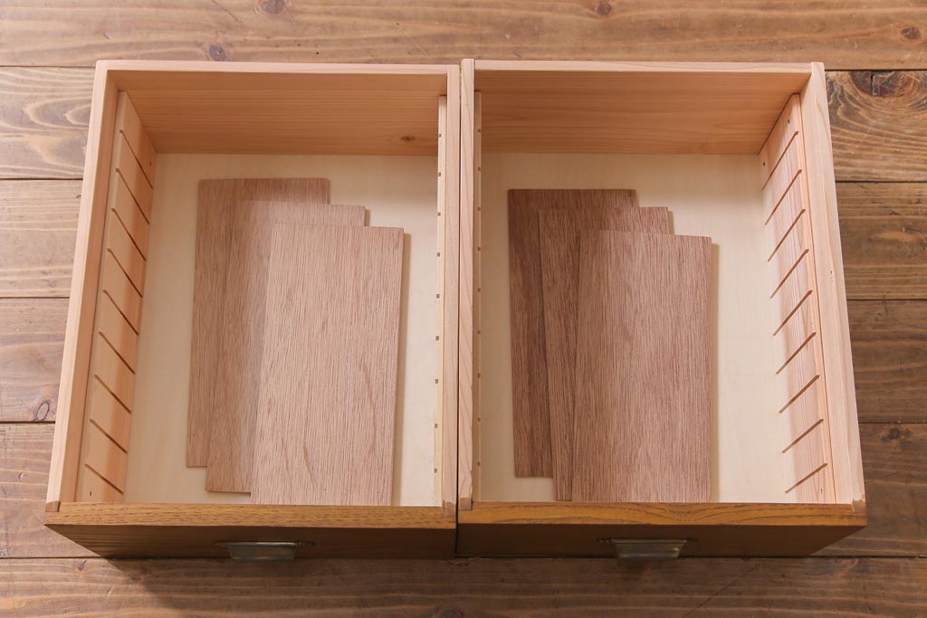 ■引き出しの内寸(仕切り付・各30mmピッチで調節可能) 各 深さ155mm/幅260mm/奥行 手前から70・100・100・70mm
