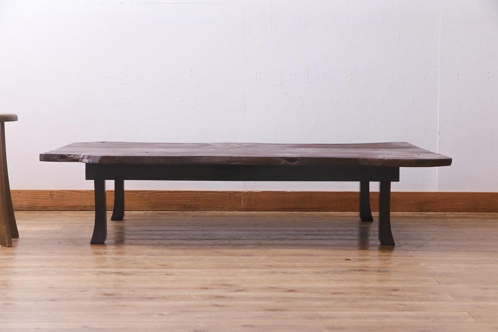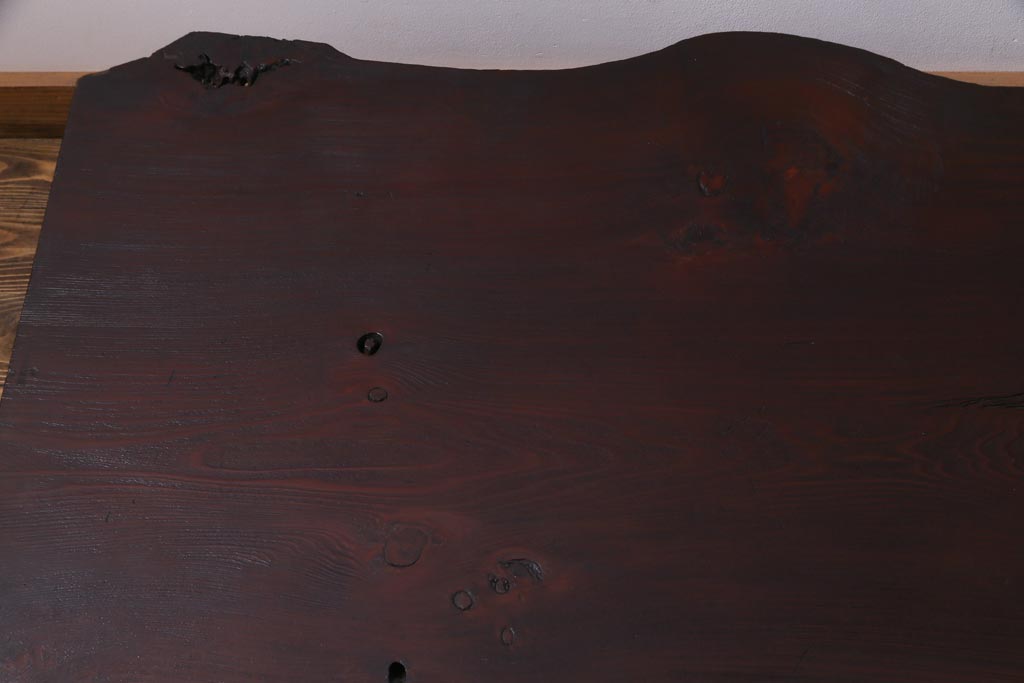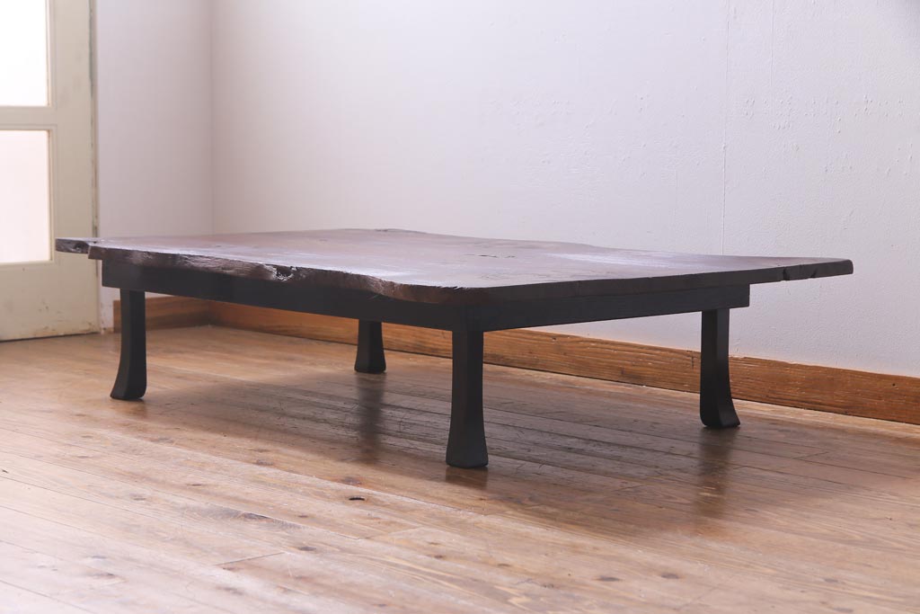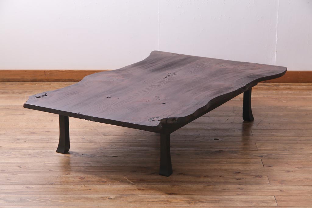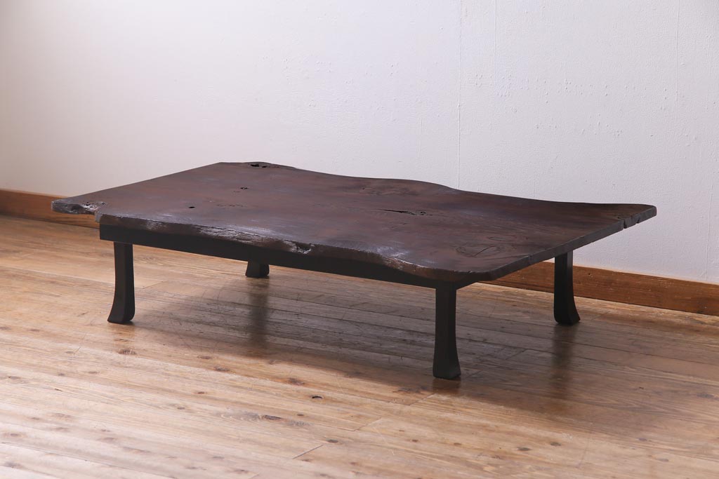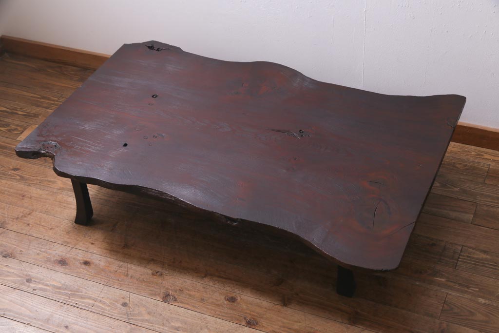 ビンテージ家具 和製ビンテージ スギ材一枚板 木材の表情を楽しめる折り畳み式座卓(ローテーブル、ちゃぶ台)(R-038389)です。
