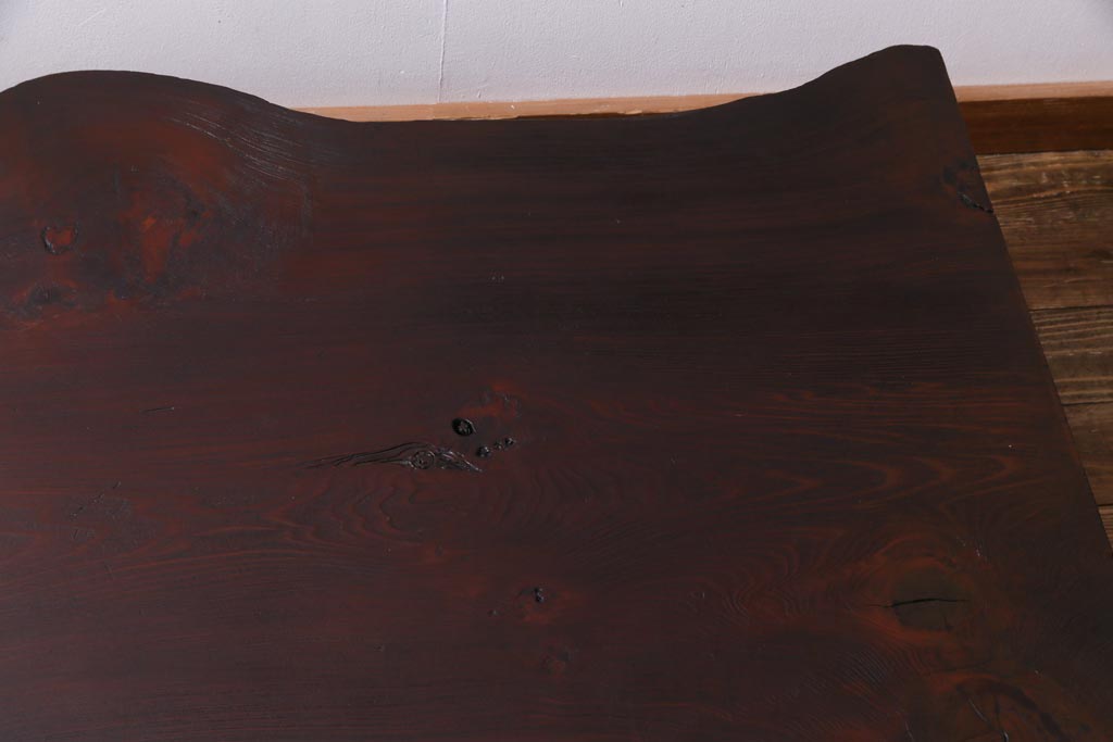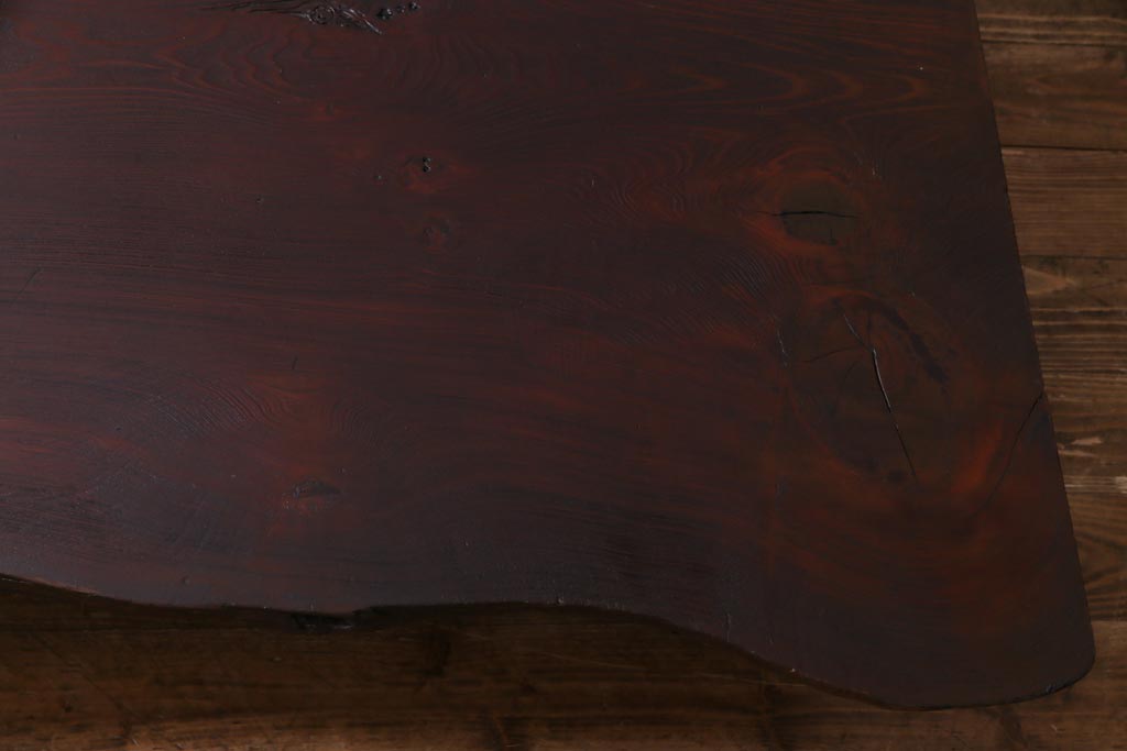 ビンテージ家具 和製ビンテージ スギ材一枚板 木材の表情を楽しめる折り畳み式座卓(ちゃぶ台)(R-038389)