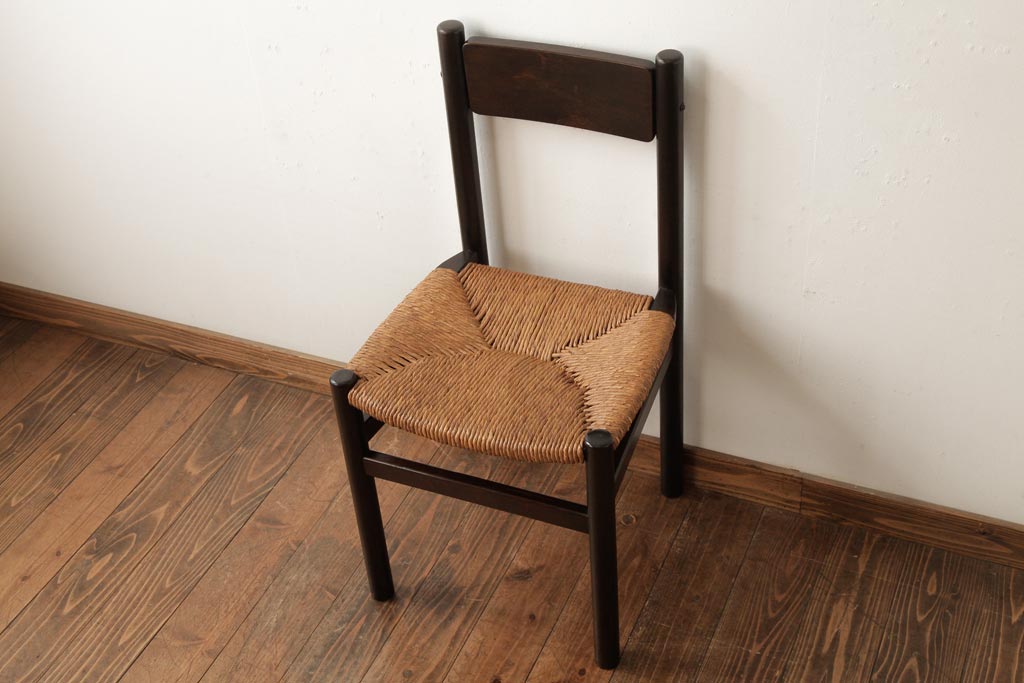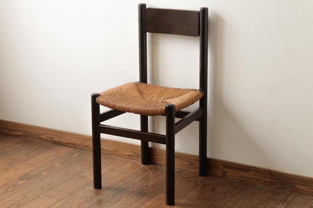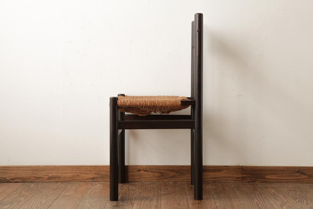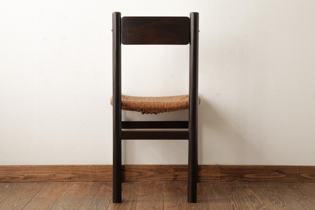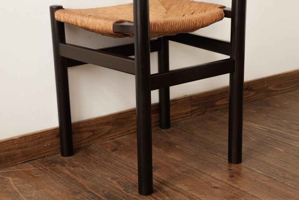 椅子・ベンチ> ダイニングチェア > ビンテージ家具 松本民芸家具風 ラッシ座面が優しい雰囲気のダイニングチェア(ラッシチェア、椅子)(R-038454)