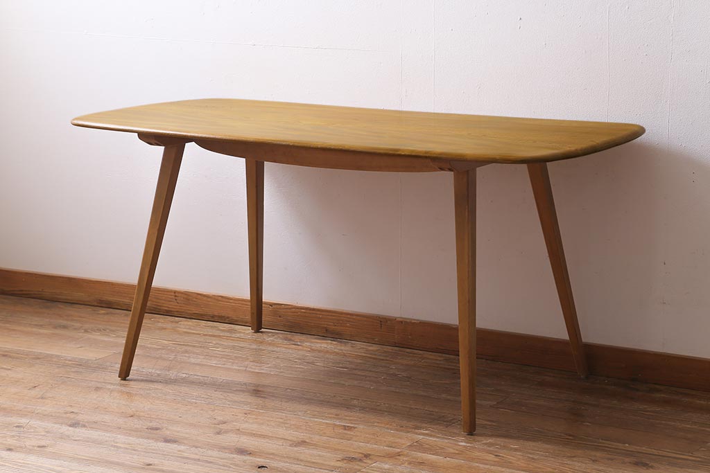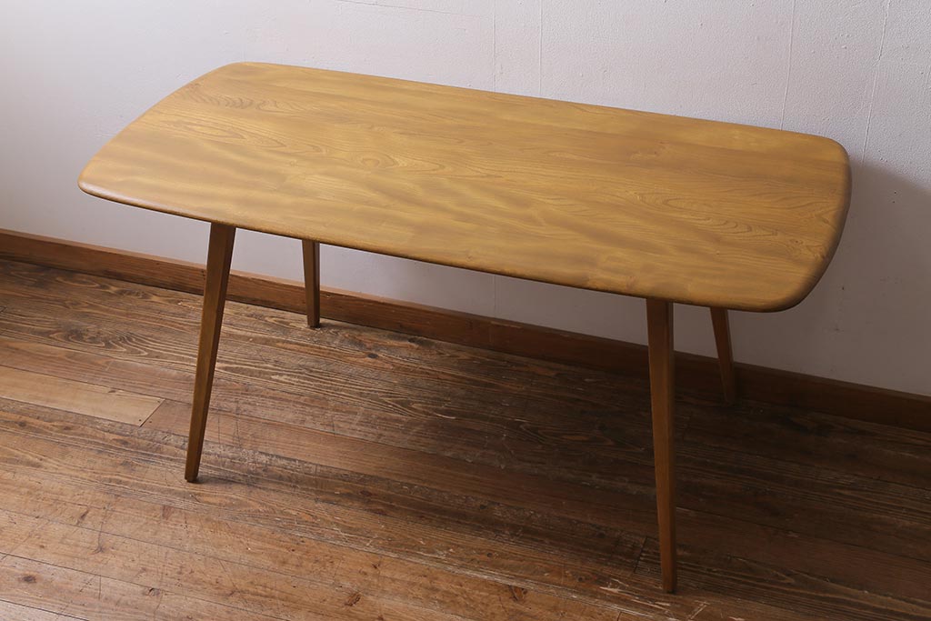 ヴィンテージ家具 イギリスビンテージ ERCOL(アーコール) Winsor(ウィンザー)シリーズ 木目の美しさが目を引くダイニングテーブル(プランクテーブル)(R-038428)です。