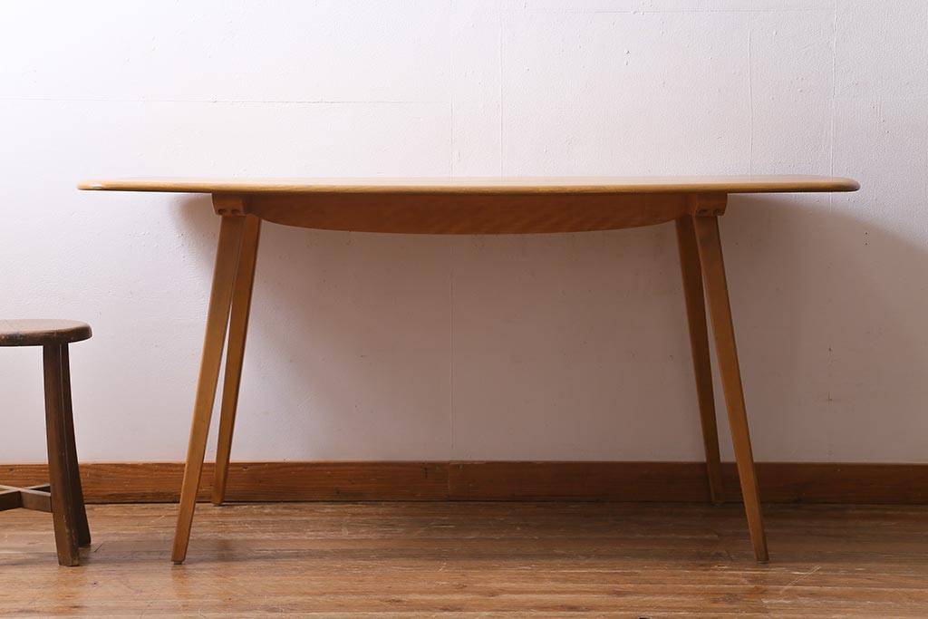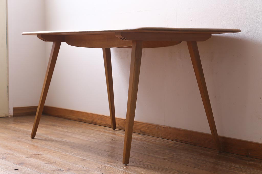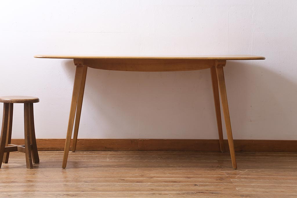 ヴィンテージ家具 イギリスビンテージ ERCOL(アーコール) Windsor(ウィンザー)シリーズ 木目の美しさが目を引くダイニングテーブル(プランクテーブル)(R-038428)