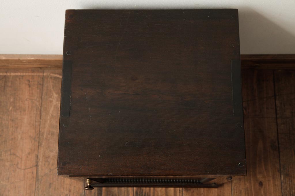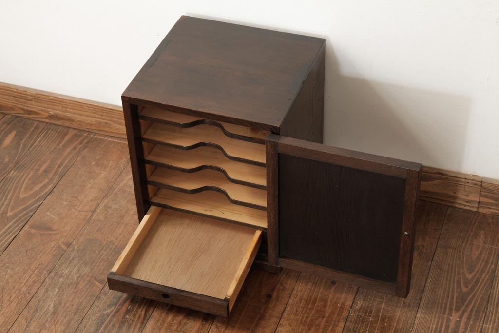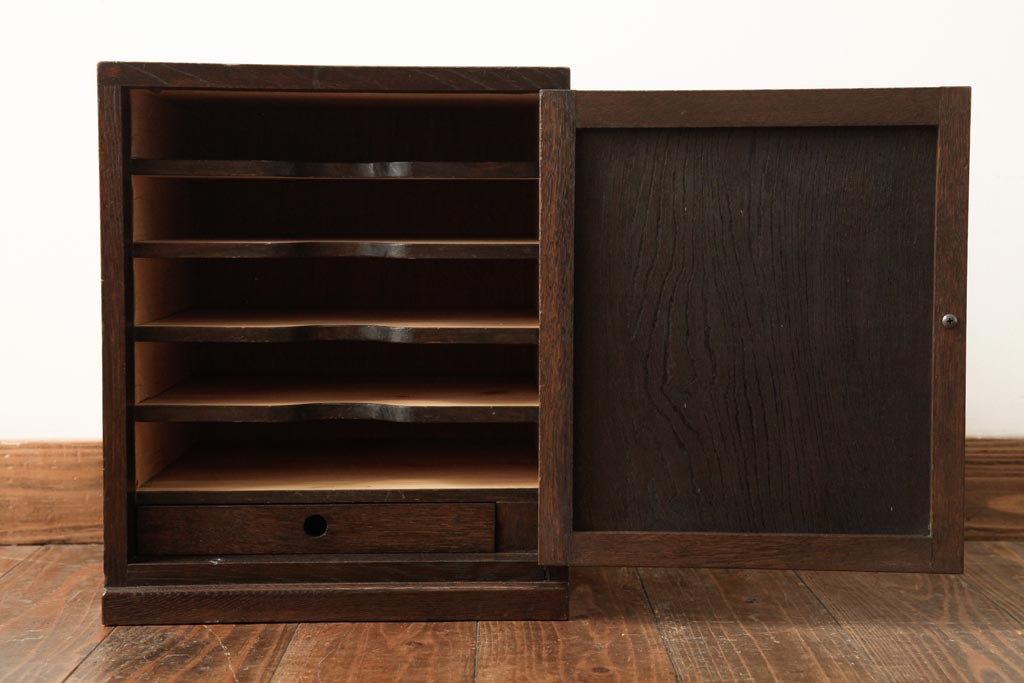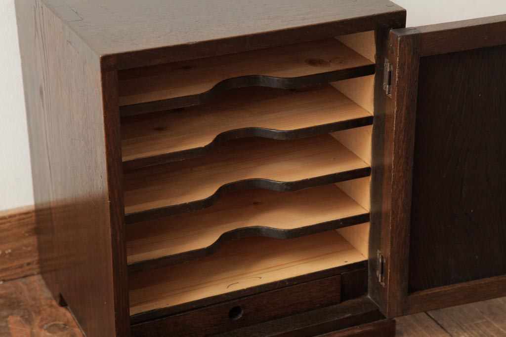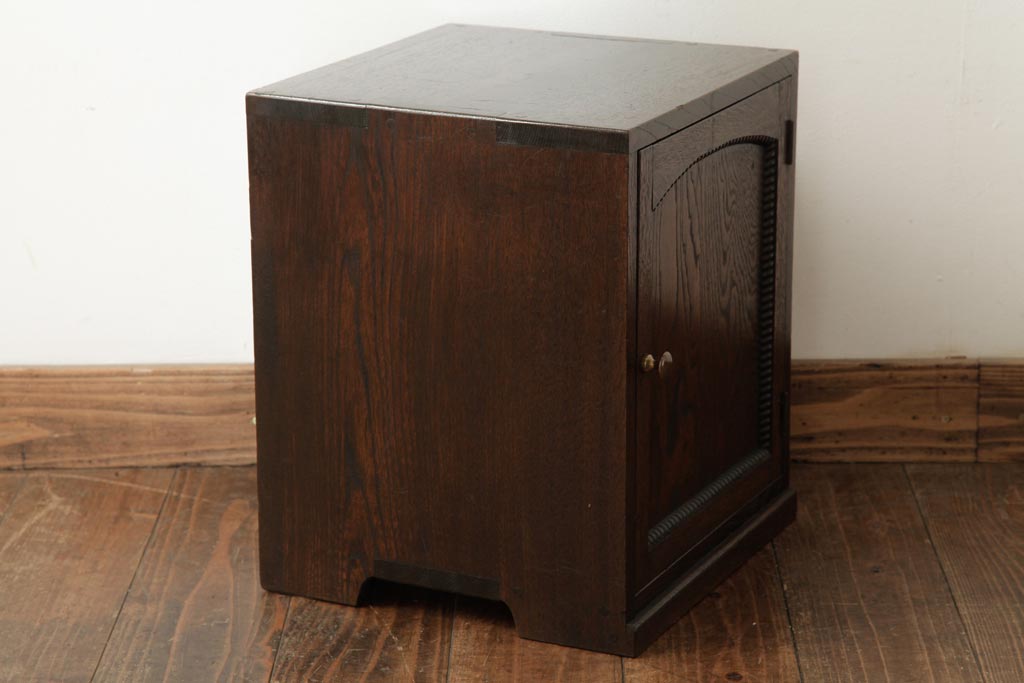 アンティーク家具 昭和初期 ナラ材 和製アンティークのシックな扉付きレコードケース(収納棚)(R-038467)です。