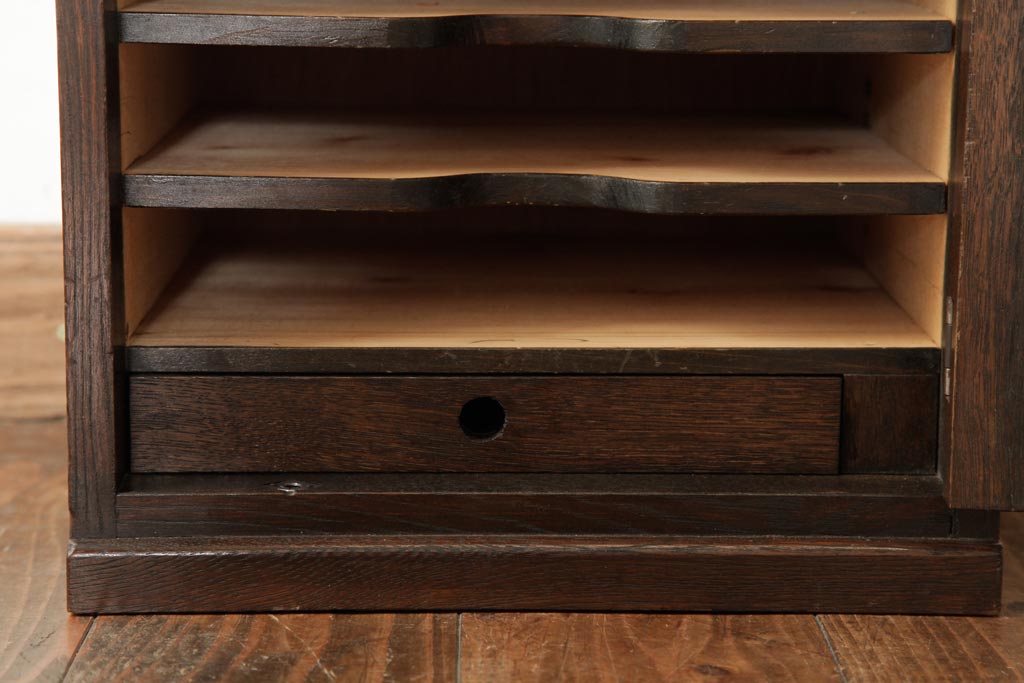 キャビネット・戸棚 > アンティーク家具 昭和初期 ナラ材 和製アンティークのシックな扉付きレコードケース(収納棚)(R-038467)