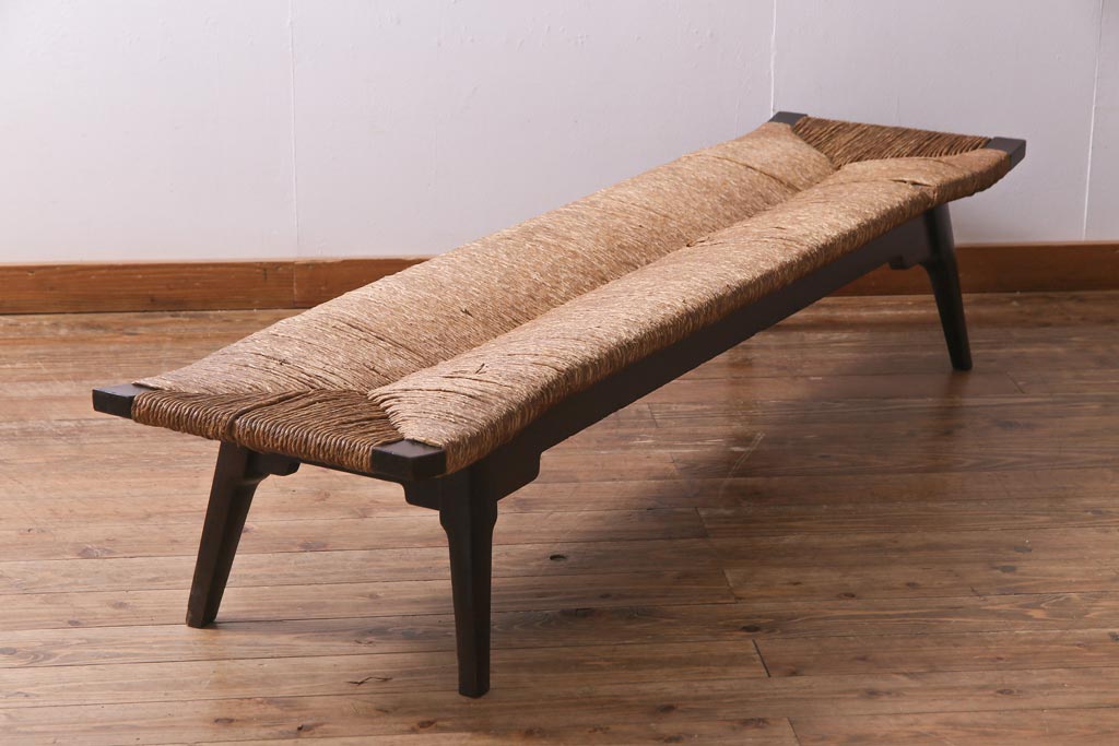 ジャンク品 ビンテージ家具 松本民芸家具 519型長スツール ラッシベンチ(R-038381)