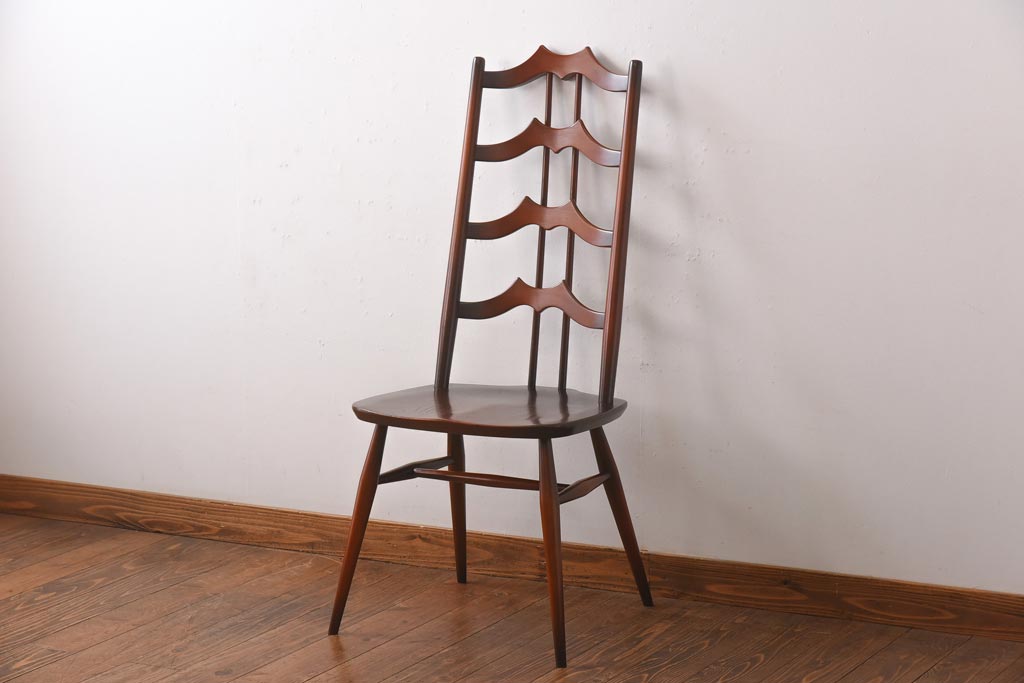 ヴィンテージ家具 イギリスビンテージ ERCOL(アーコール) 希少!洗練された佇まいのラダーバックチェア(ダイニングチェア、椅子)(R-038475)