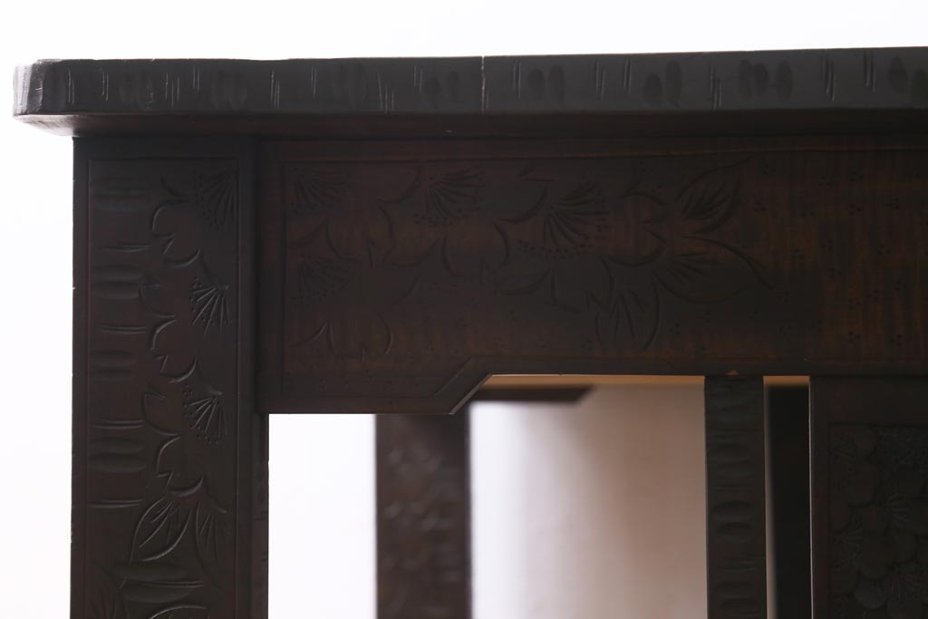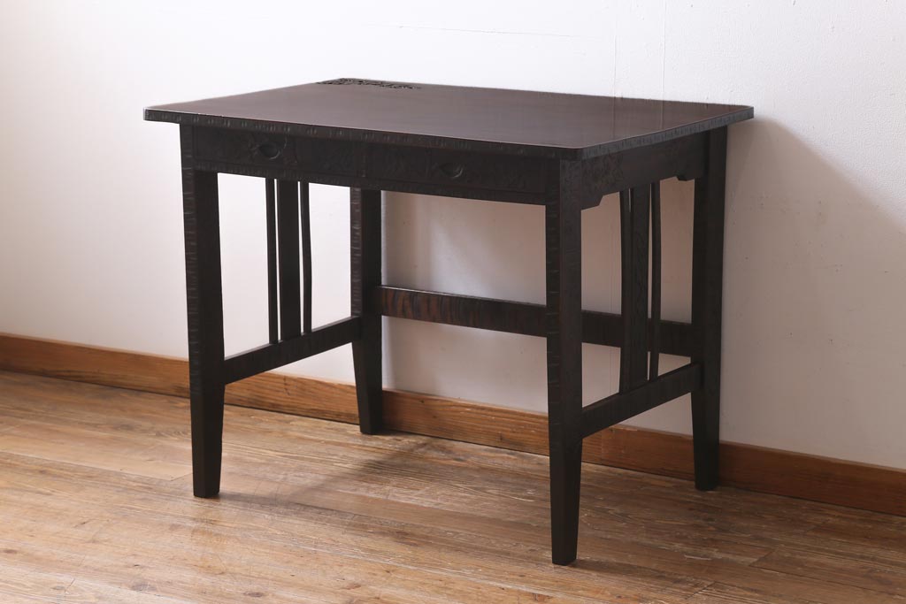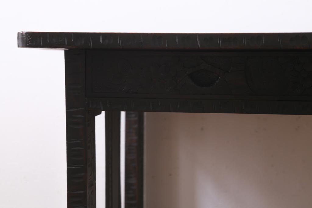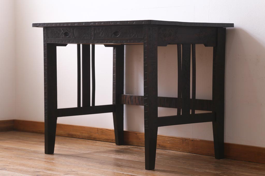 デスク> ワークデスク > ビンテージ家具 伝統工芸 軽井沢彫り 優美な意匠が施された和モダンなデスク(机、在宅ワーク、在宅用ワークデスク)(R-038514)