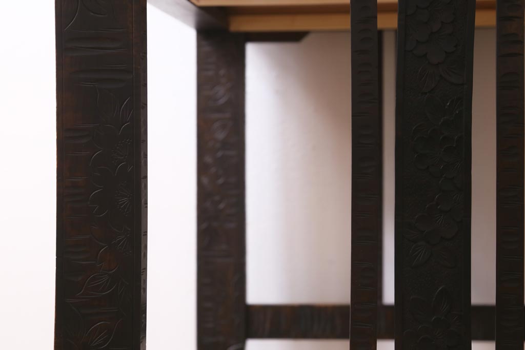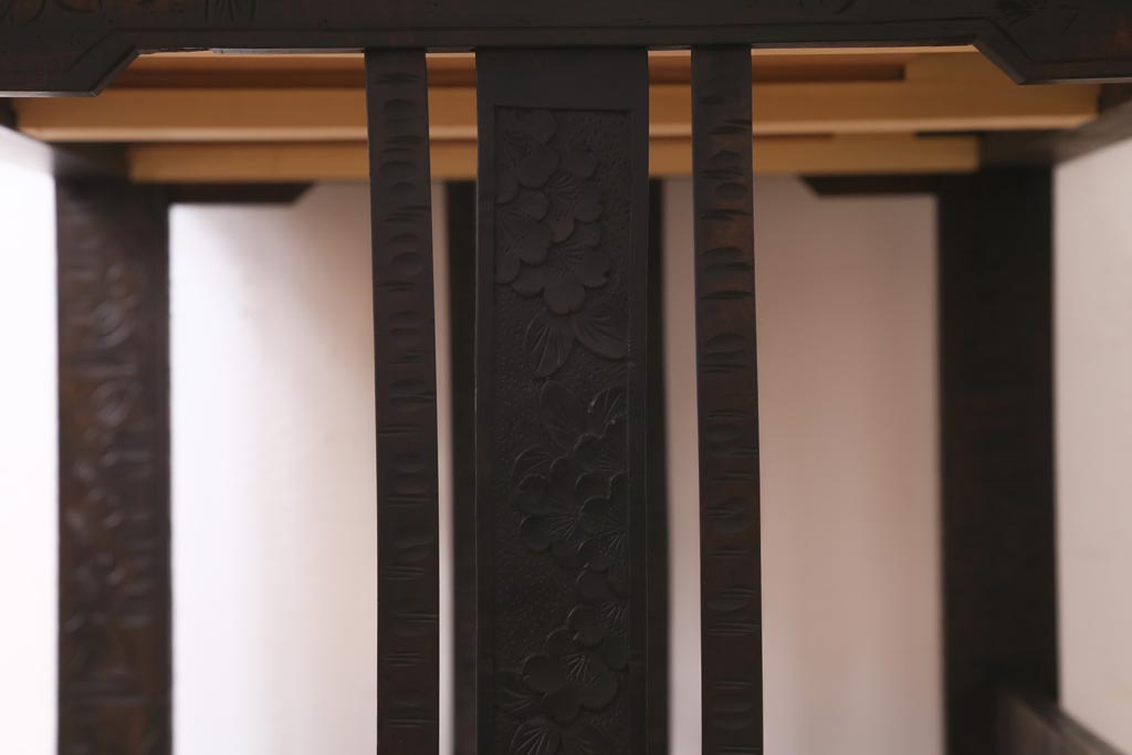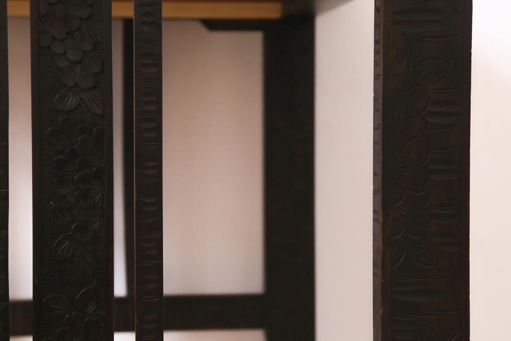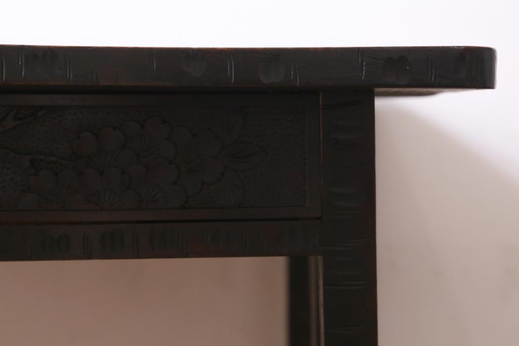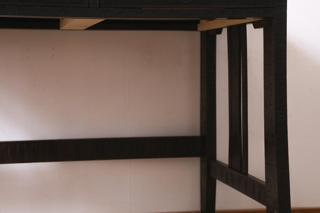デスク> ワークデスク > ビンテージ家具 伝統工芸 軽井沢彫り 優美な意匠が施された和モダンなデスク(机、在宅ワーク、在宅用ワークデスク)(R-038514)
