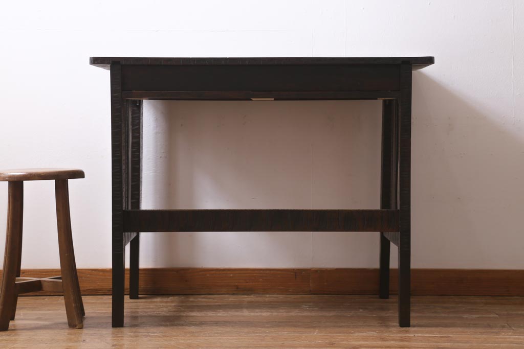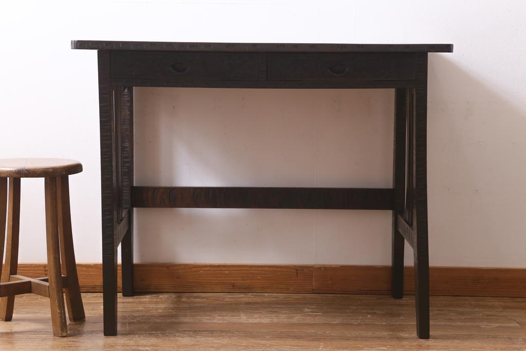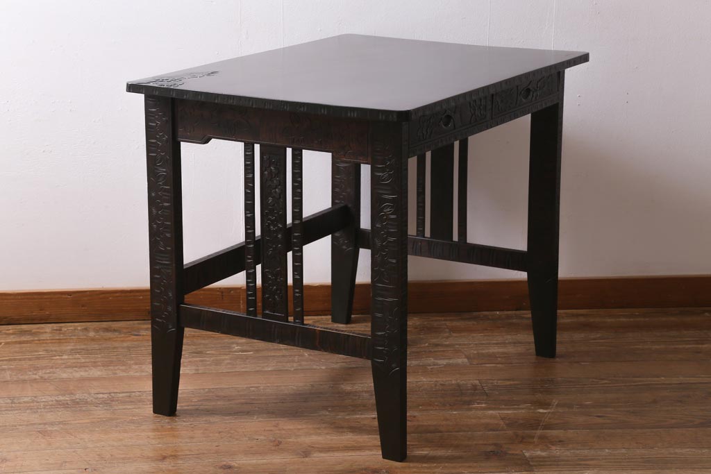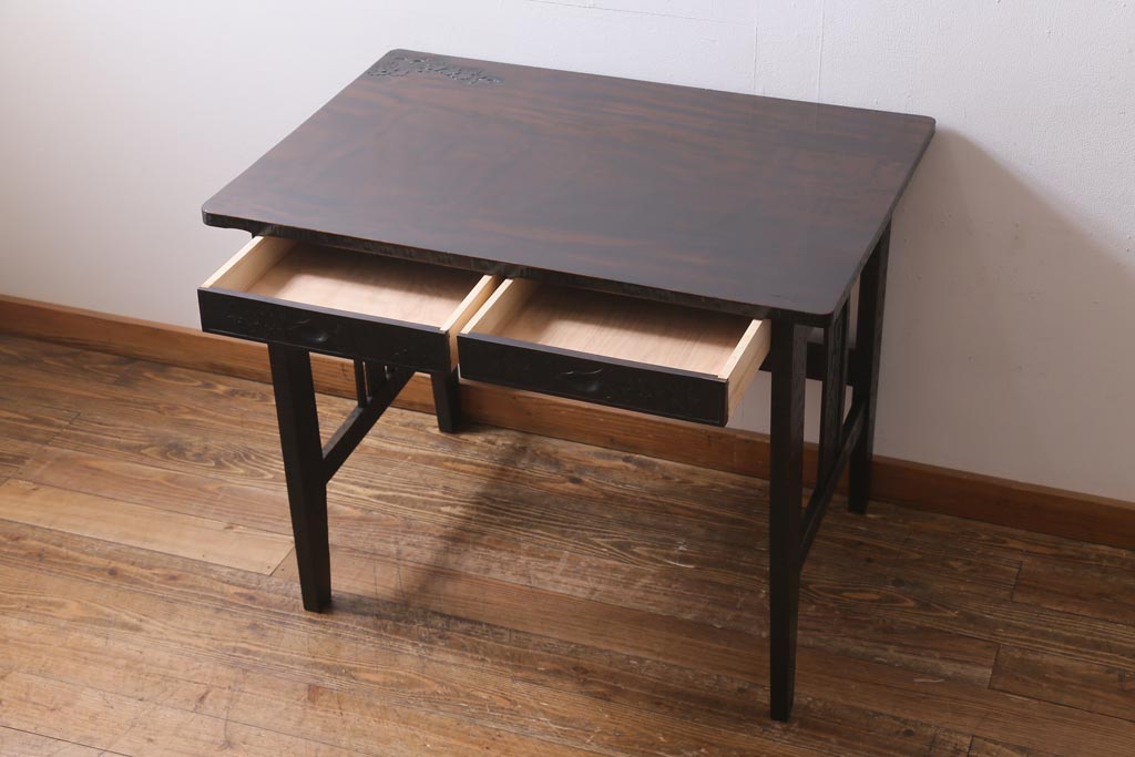 ビンテージ家具 伝統工芸 軽井沢彫り 優美な意匠が施された和モダンなデスク(机、在宅ワーク、在宅用ワークデスク)(R-038514)