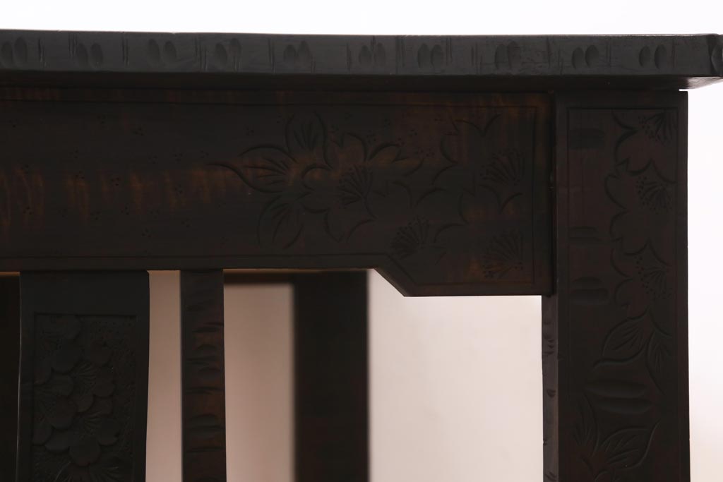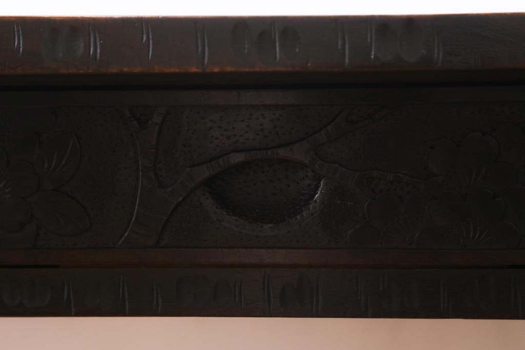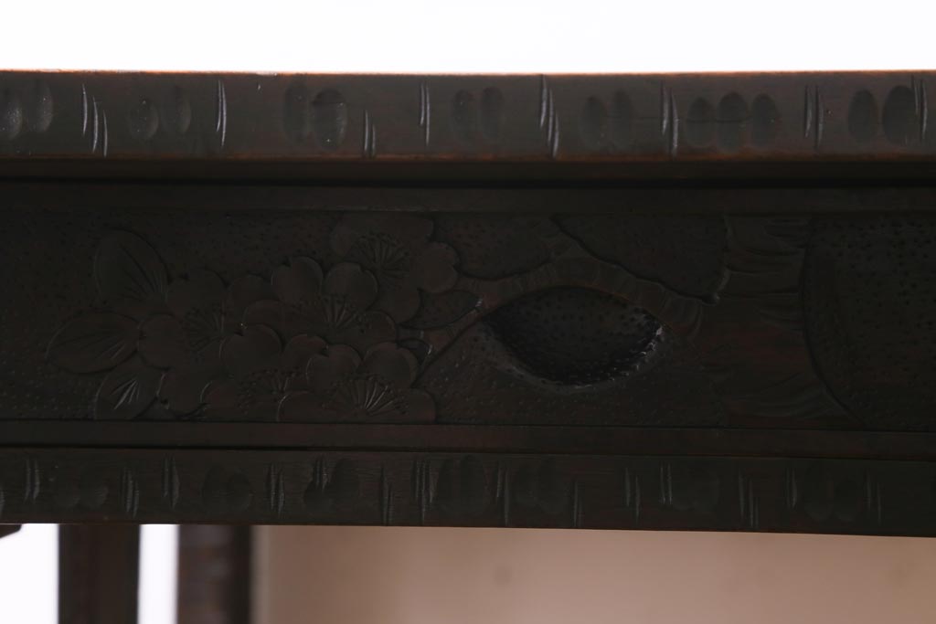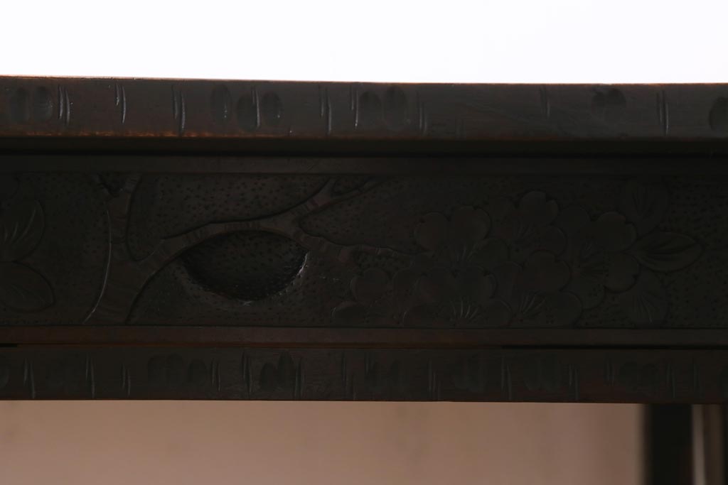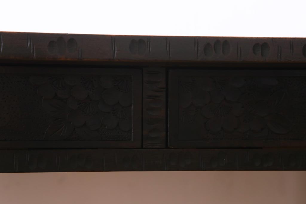 民芸家具 > ビンテージ家具 伝統工芸 軽井沢彫り 優美な意匠が施された和モダンなデスク(机、在宅ワーク、在宅用ワークデスク)(R-038514)