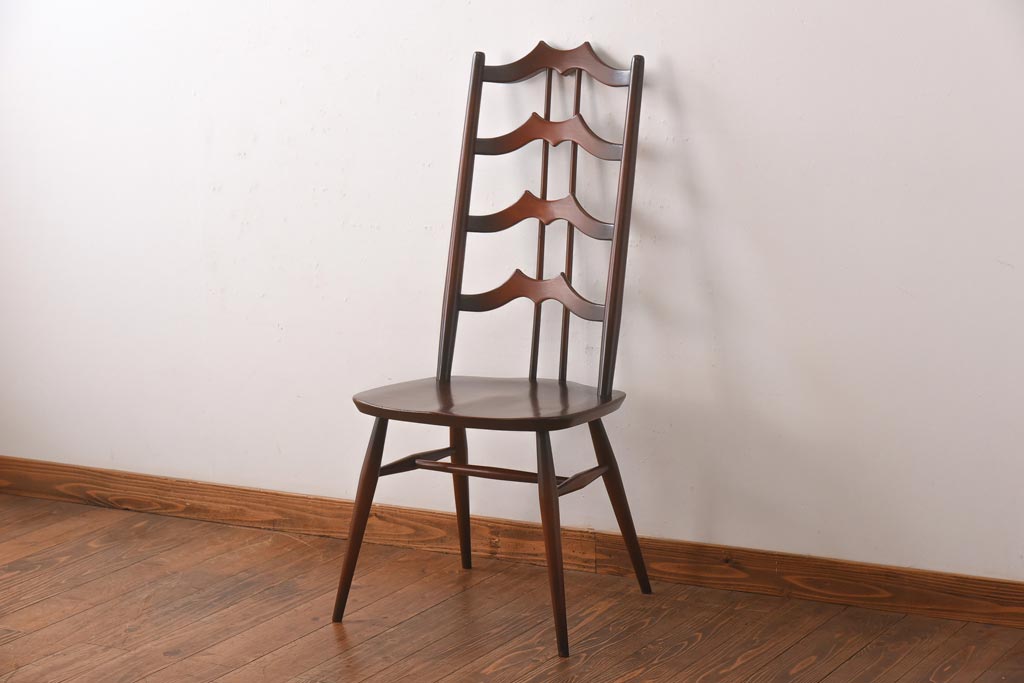 ヴィンテージ家具 イギリスビンテージ ERCOL(アーコール) 希少!洗練された佇まいのラダーバックチェア(ダイニングチェア、椅子)(R-038474)