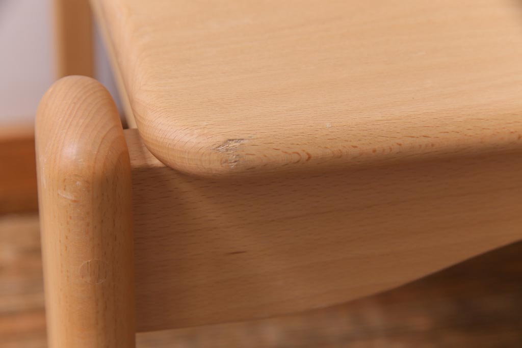今回、同時販売している「飛騨産業 キッズスタッキングチェア」と合わせると最後の画像のようになります。(型番によって高さが異なりますが、すべて同一画像を使用しておりますのでご参考までにお願い致します。)