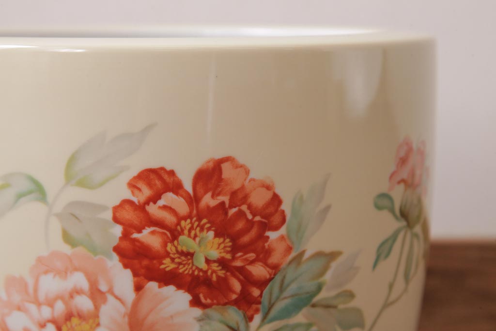火鉢> 瀬戸火鉢 > オールドノリタケ・則武(日陶) 鮮やかな牡丹が美しい火鉢瀬戸火鉢(R-038410)