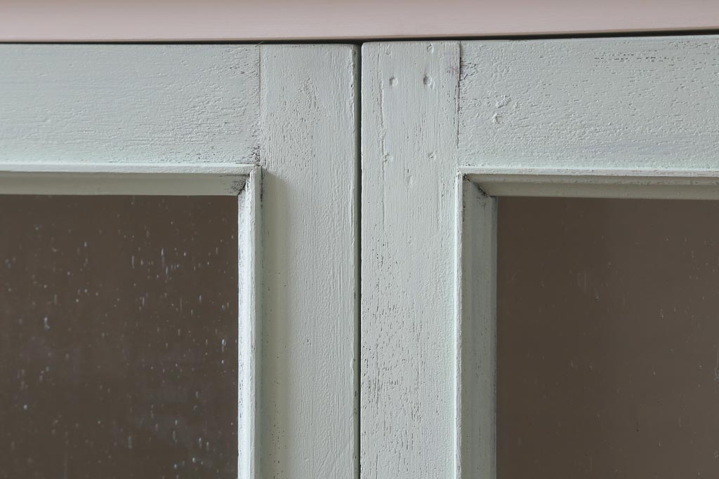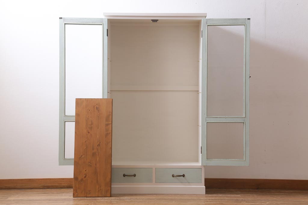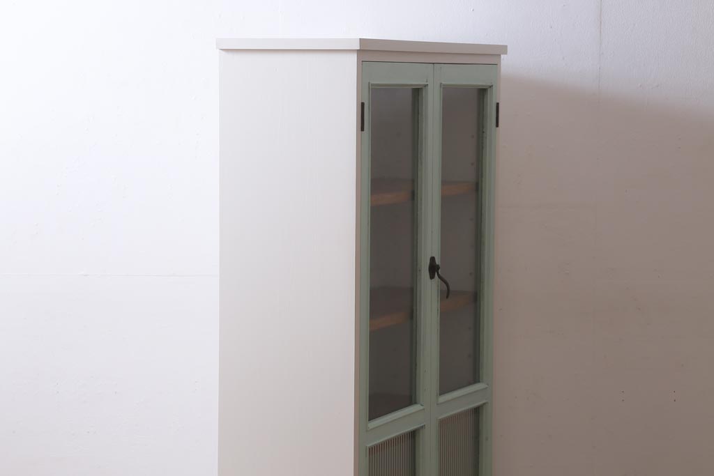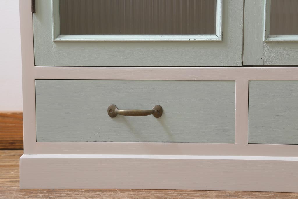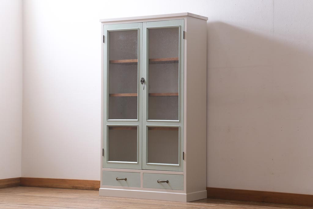キャビネット・戸棚> 本箱 > ラフジュ工房オリジナル 古建具リメイク 気泡ガラス・モールガラス 淡いペイントがお洒落なブックケース(本箱、収納棚、キャビネット)(R-038517)