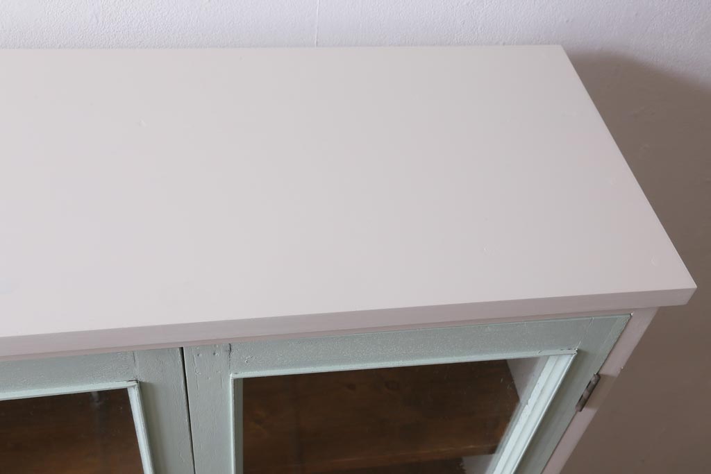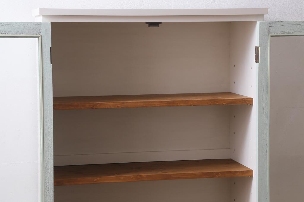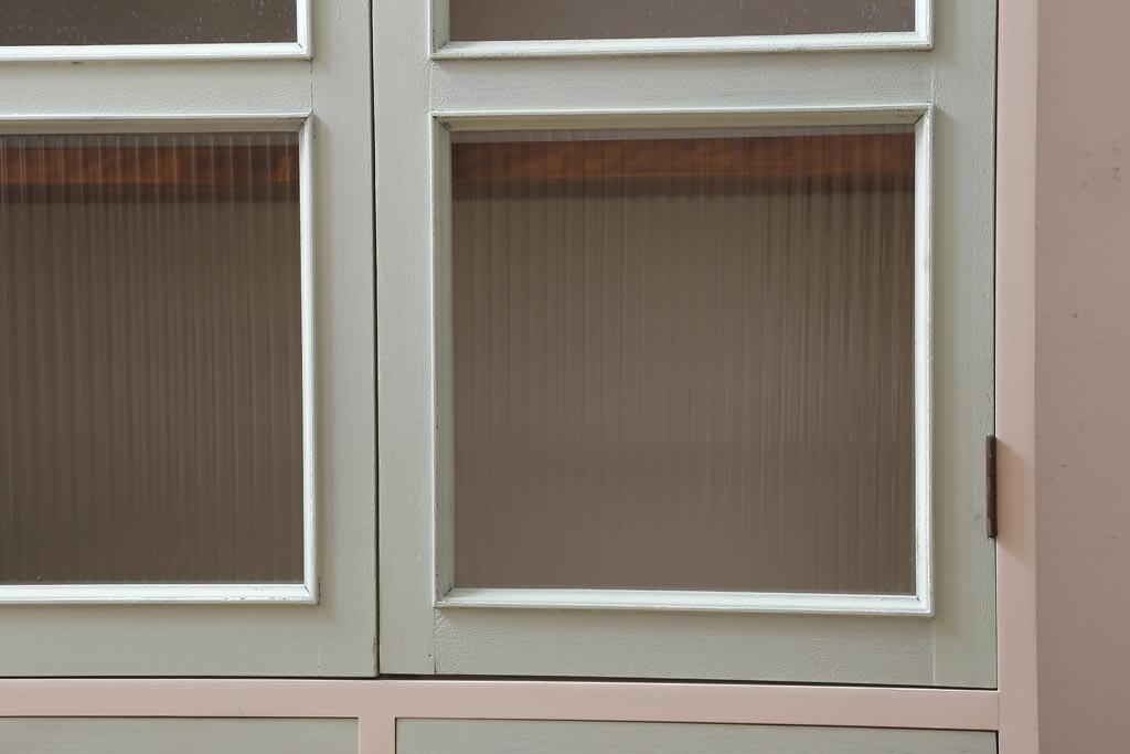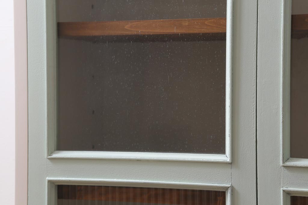 ラフジュ工房オリジナル 古建具リメイク 気泡ガラス・モールガラス 淡いペイントがお洒落なブックケース(本箱、収納棚、キャビネット)(R-038517)