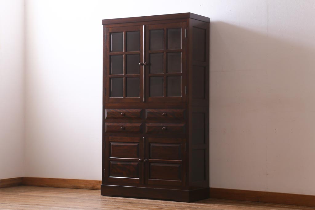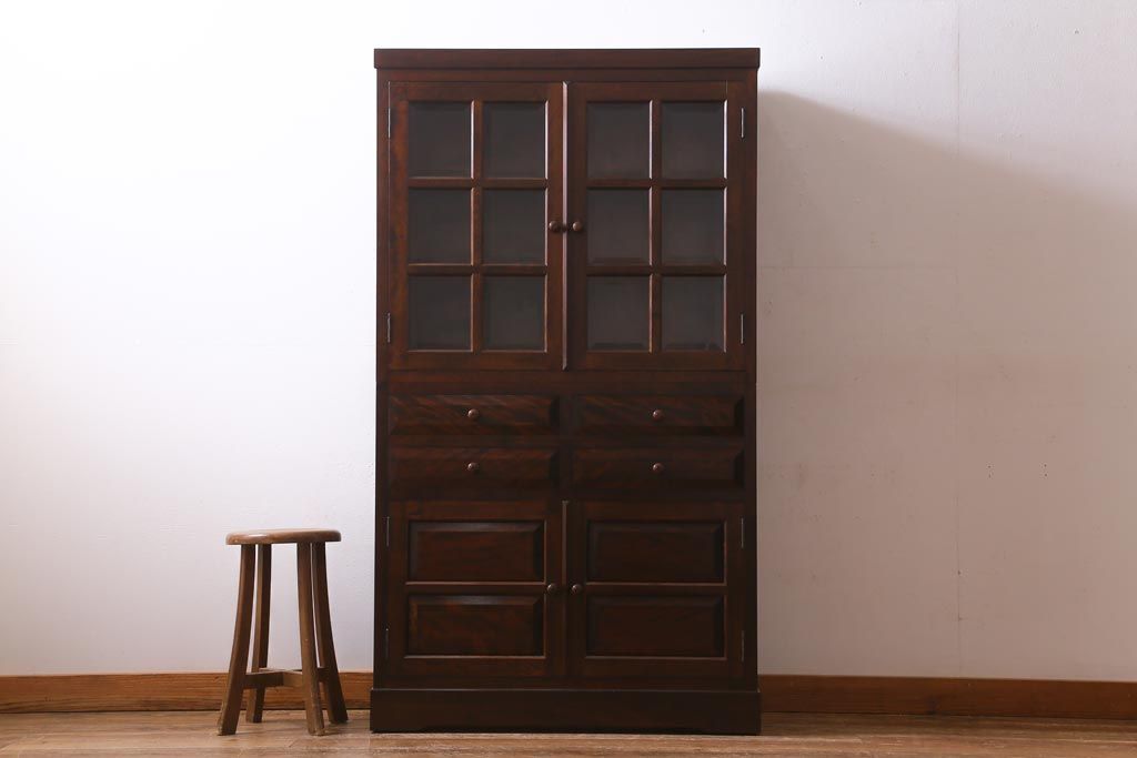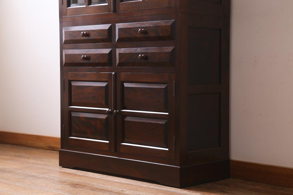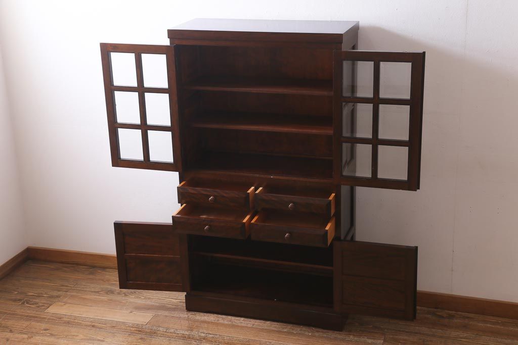 中古 松本民芸家具 シックな佇まいが魅力のG-1型面取り食器棚(収納棚、カップボード)(R-038531)
