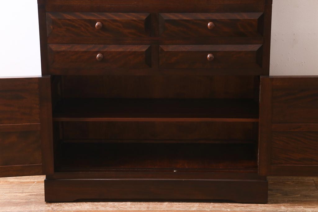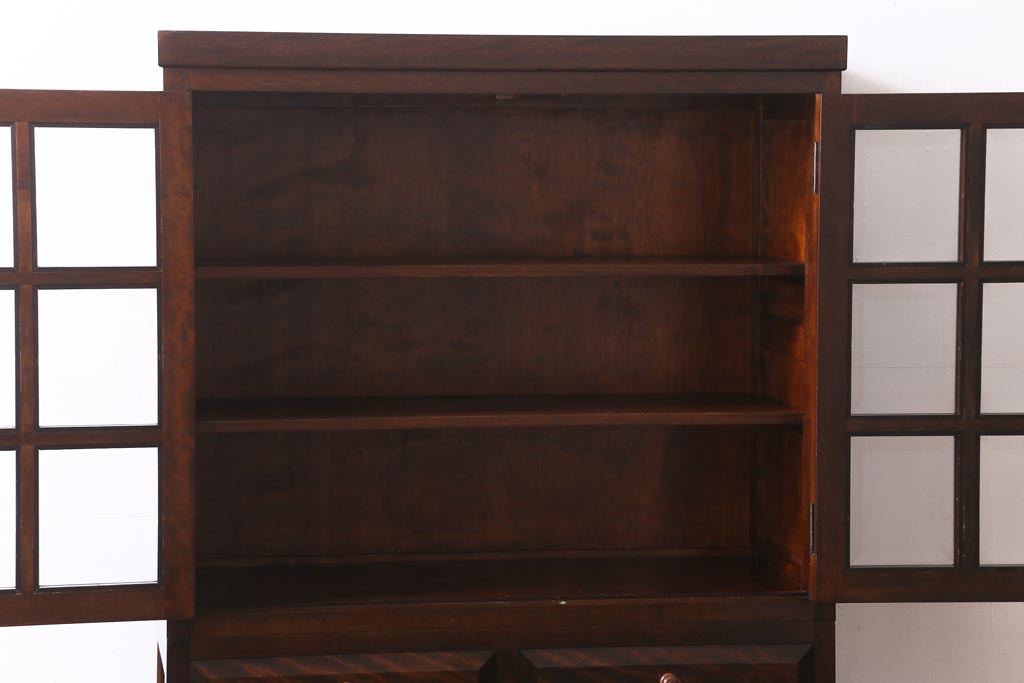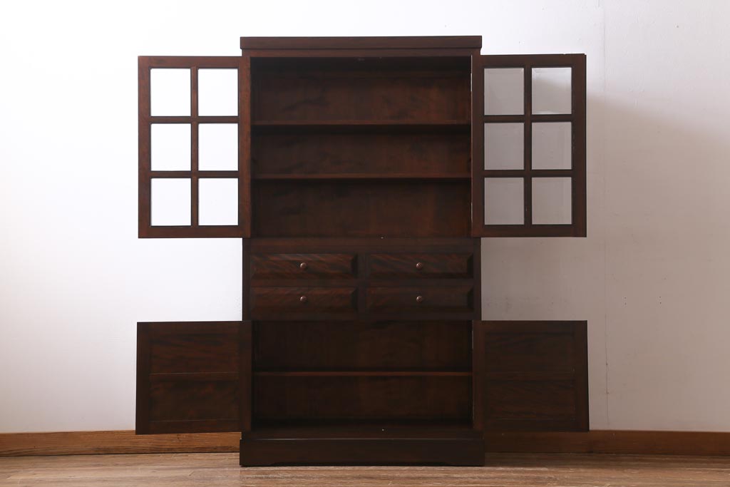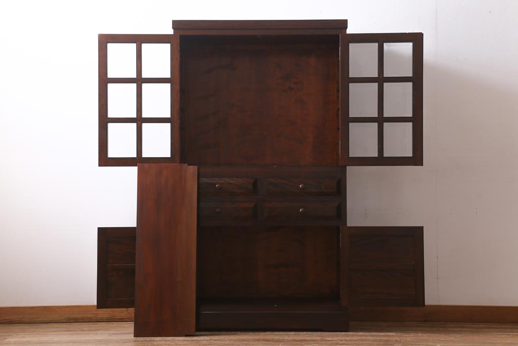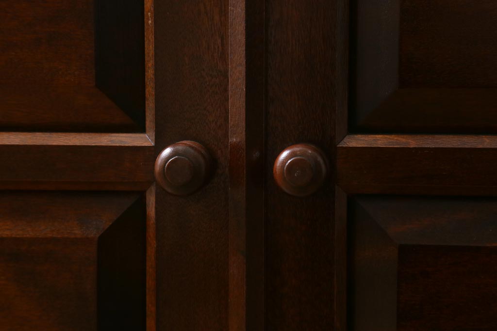 中古 松本民芸家具 シックな佇まいが魅力のG-1型面取り食器棚(収納棚、カップボード)(R-038531)