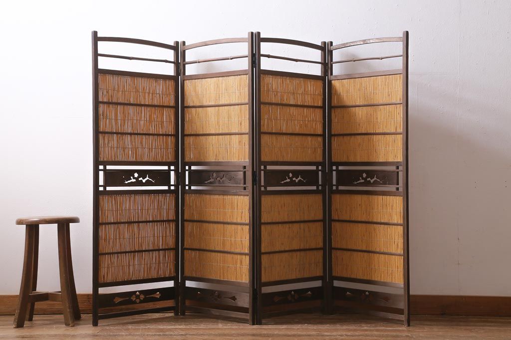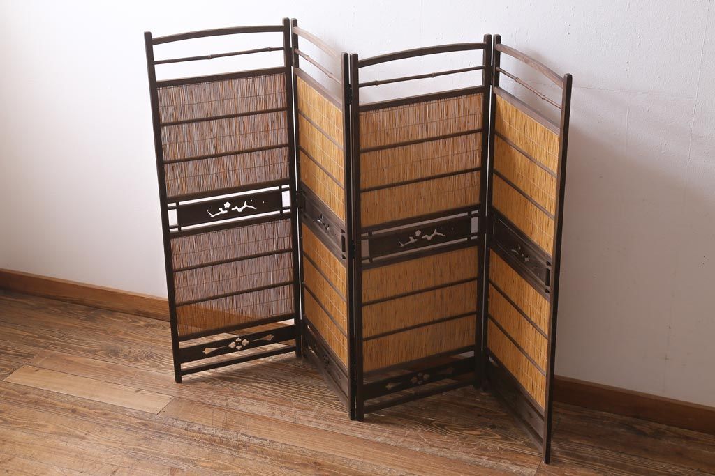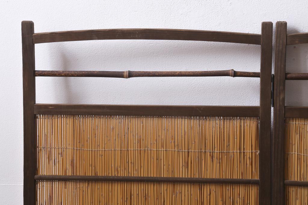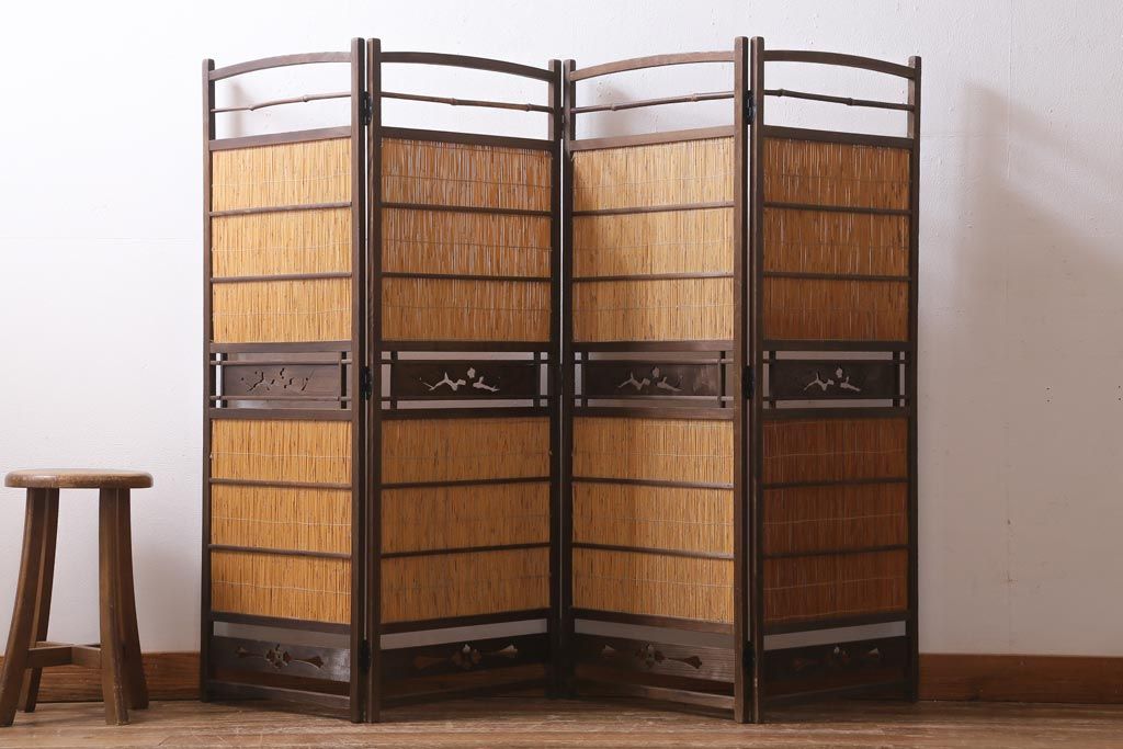 ビンテージ家具 和製ビンテージ すだれが涼やかな印象の四連折り畳み式パーテーション(衝立、仕切り)(R-038556)