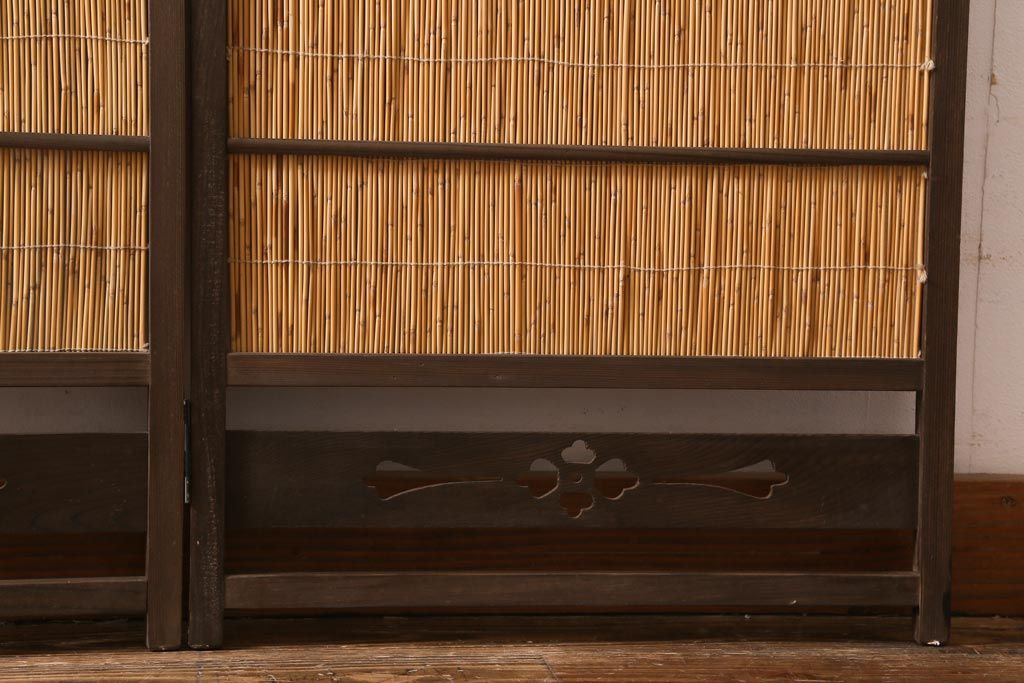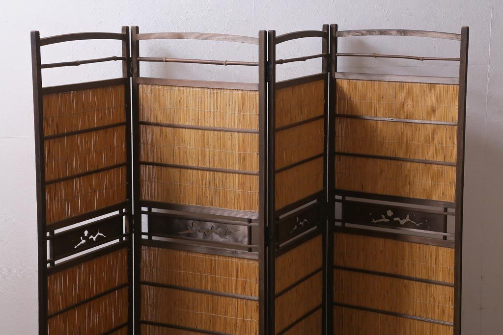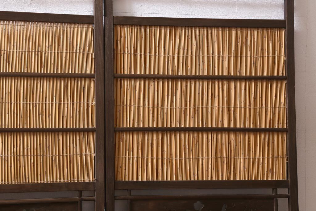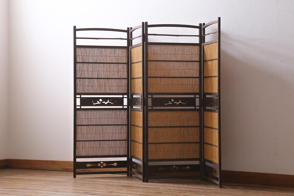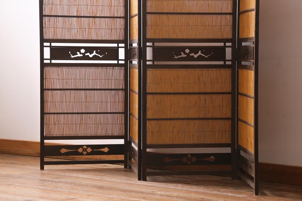 ビンテージ家具 和製ビンテージ すだれが涼やかな印象の四連折り畳み式パーテーション(衝立、仕切り)(R-038556)
