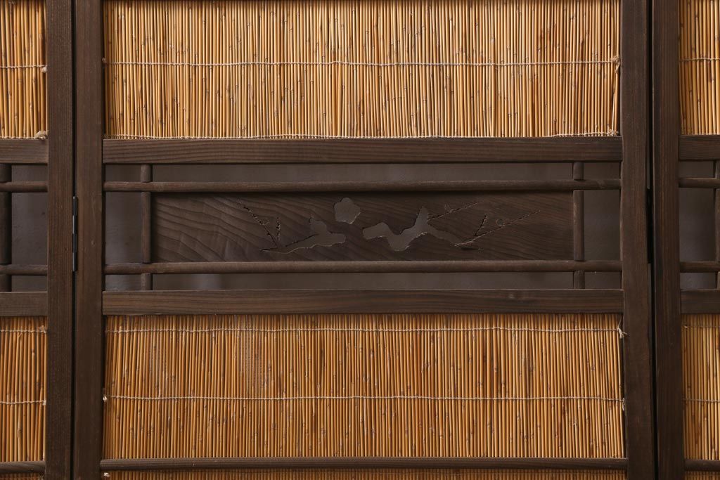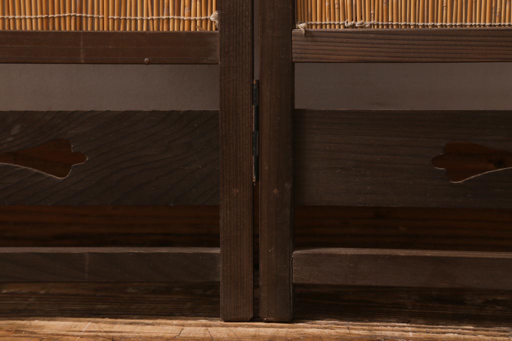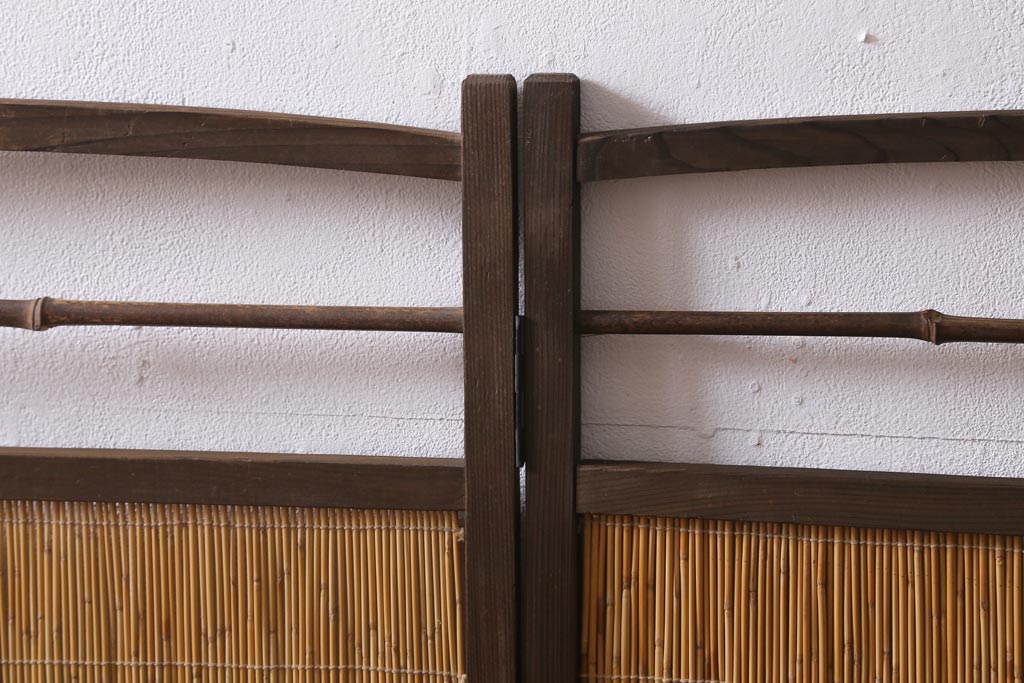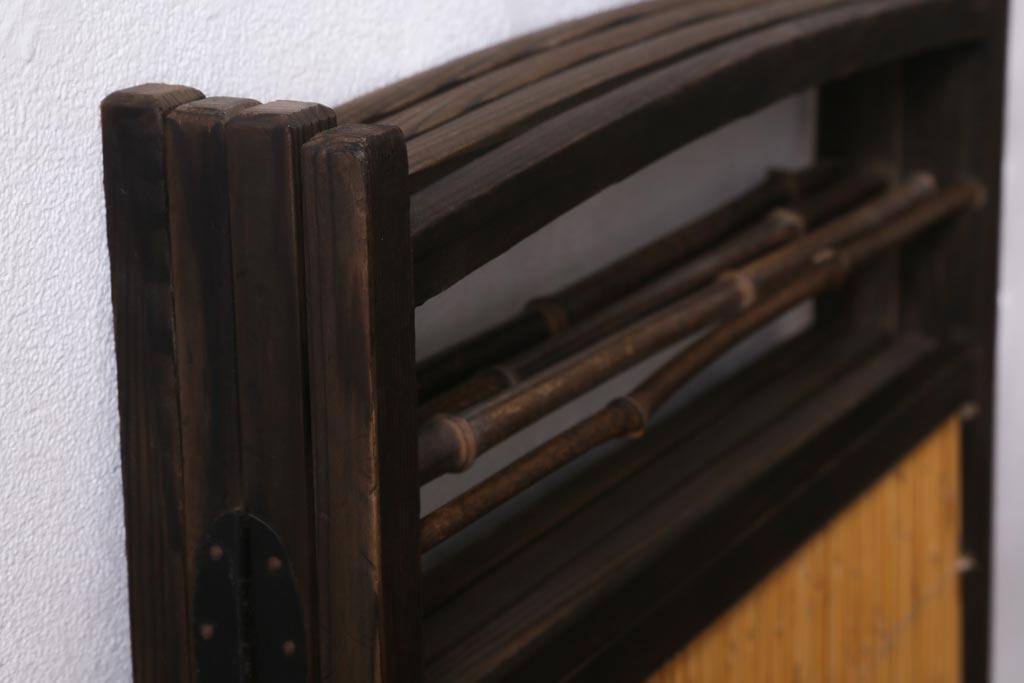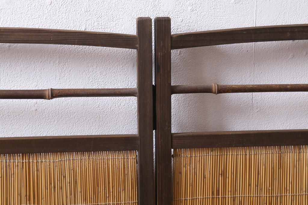ラフジュ工房> 民芸家具 > ビンテージ家具 和製ビンテージ すだれが涼やかな印象の四連折り畳み式パーテーション(衝立、仕切り)(R-038556)