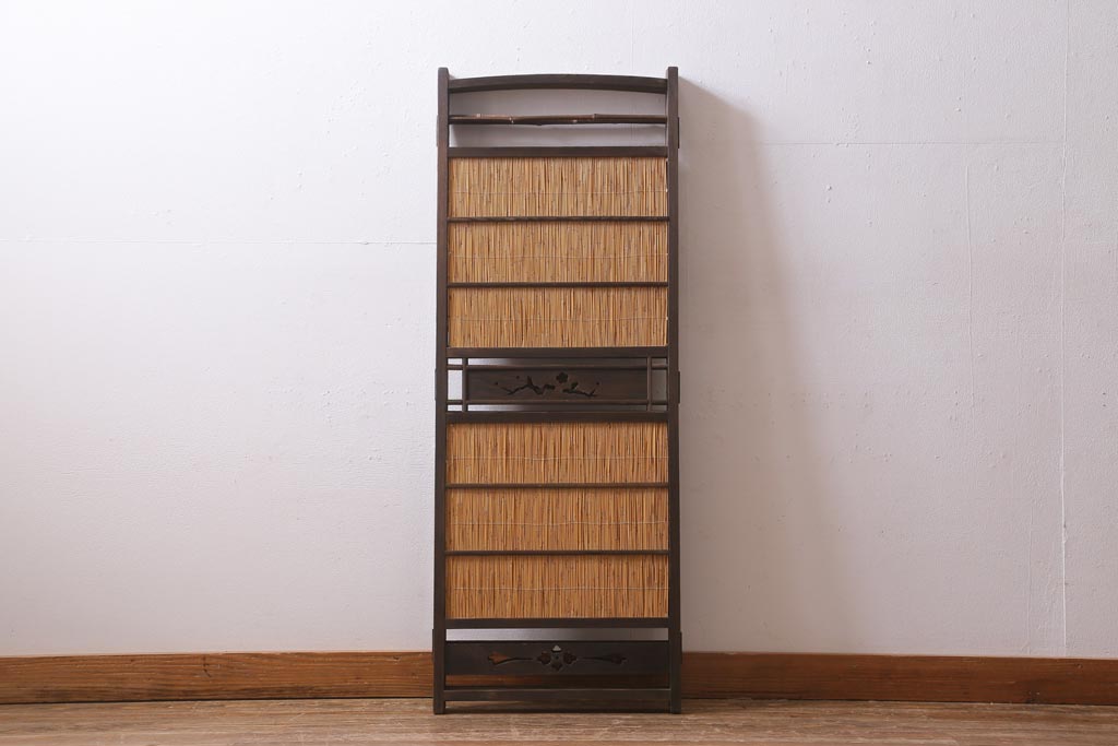 ラフジュ工房> 衝立・パーテーション > ビンテージ家具 和製ビンテージ すだれが涼やかな印象の四連折り畳み式パーテーション(衝立、仕切り)(R-038556)