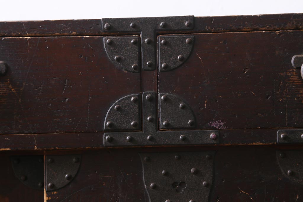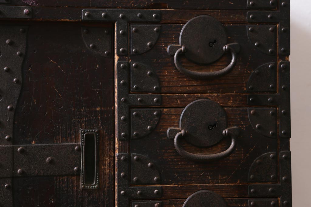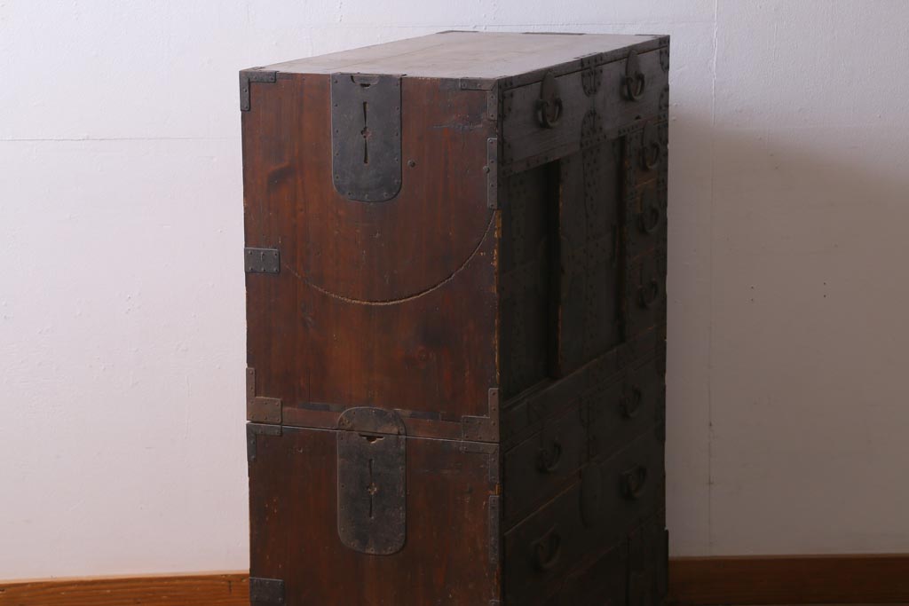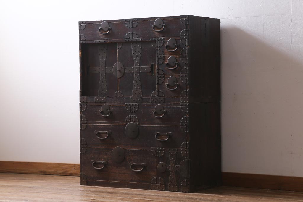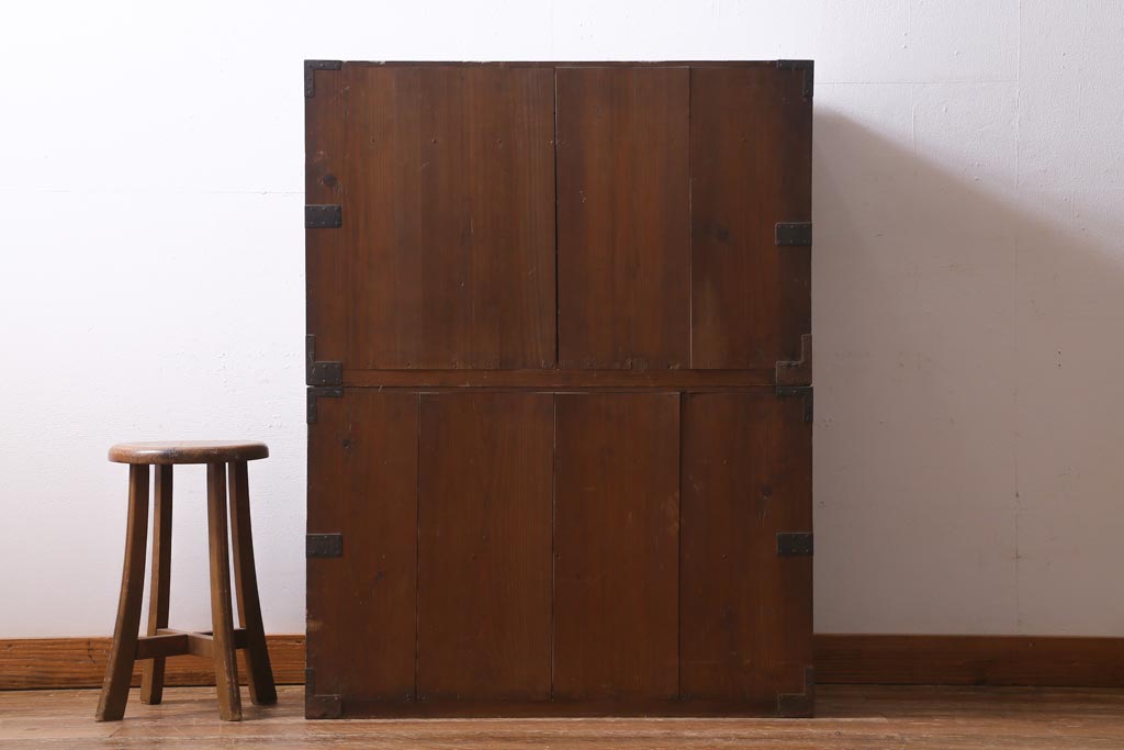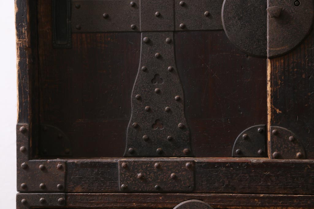 和箪笥 > 【簡易リペア限定品】アンティーク建具 明治期 十字金具が印象的な重ね帳場箪笥(時代箪笥、重ね箪笥、収納箪笥、整理箪笥)(R-038548)