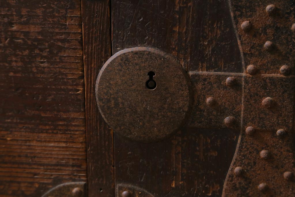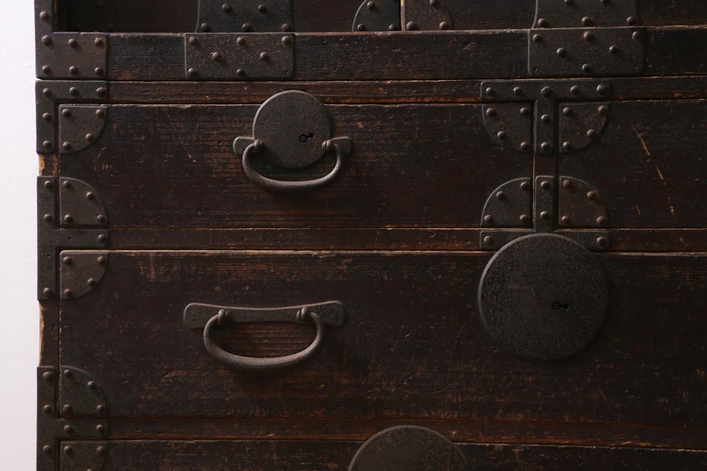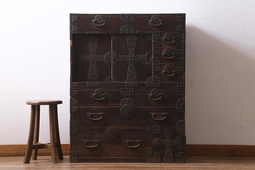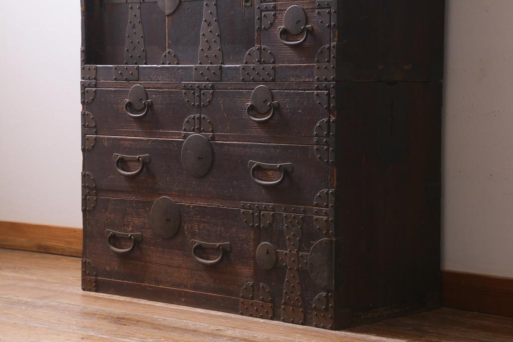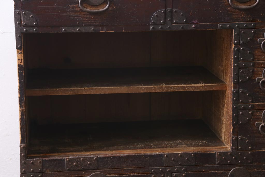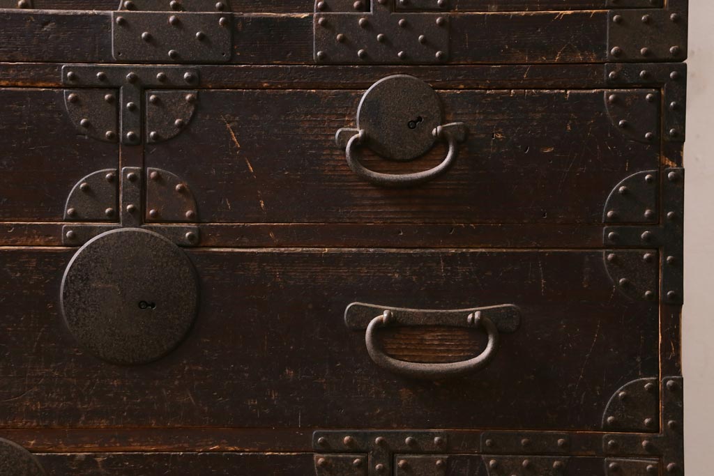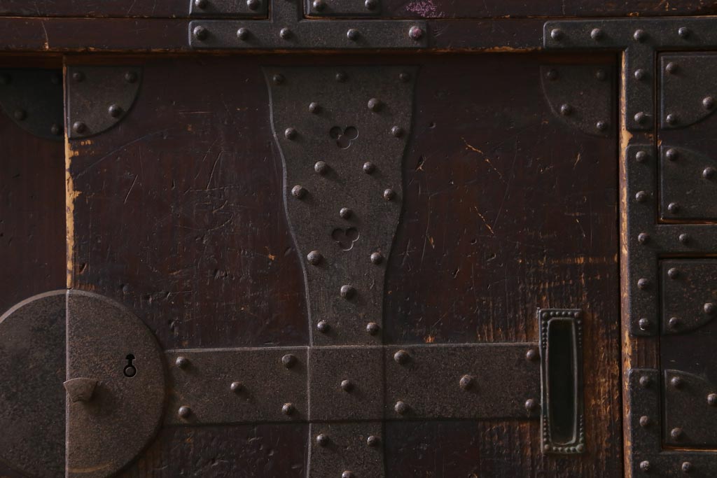 和箪笥 > 【簡易リペア限定品】アンティーク建具 明治期 十字金具が印象的な重ね帳場箪笥(時代箪笥、重ね箪笥、収納箪笥、整理箪笥)(R-038548)