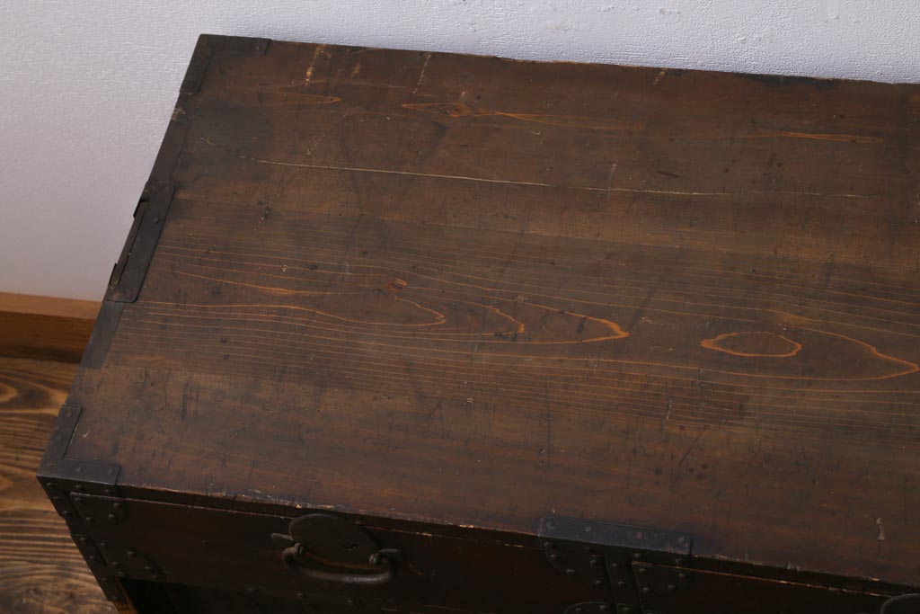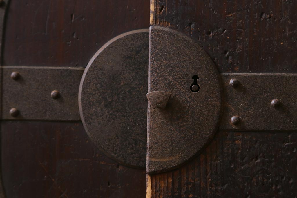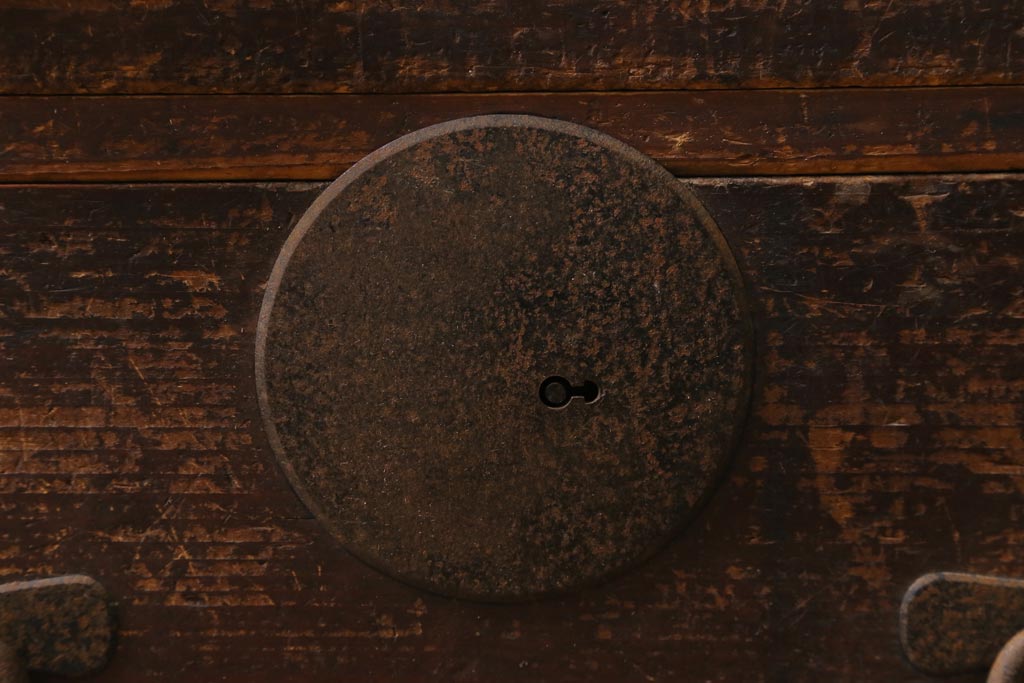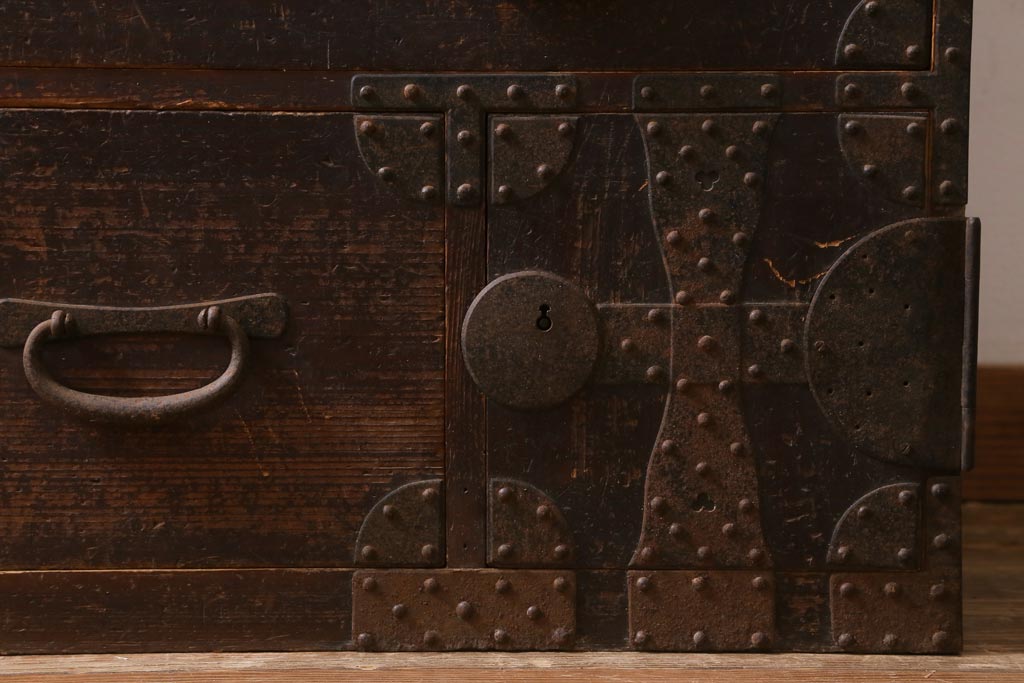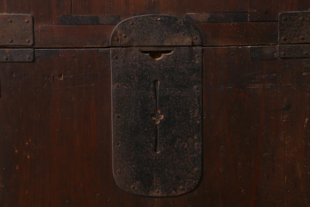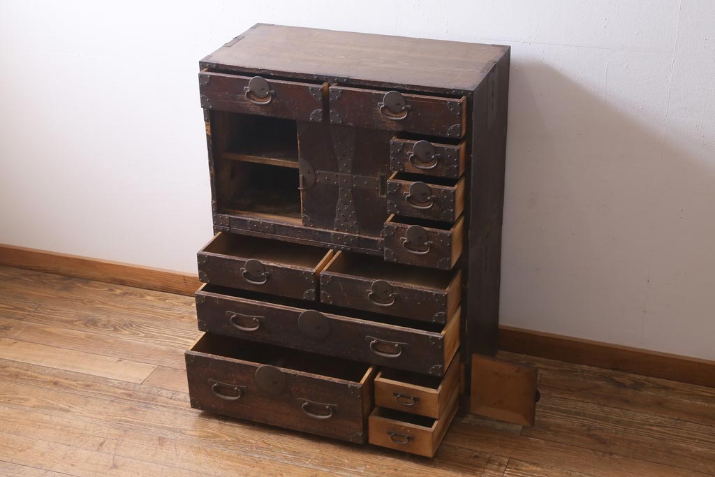 和箪笥 > 【簡易リペア限定品】アンティーク建具 明治期 十字金具が印象的な重ね帳場箪笥(時代箪笥、重ね箪笥、収納箪笥、整理箪笥)(R-038548)