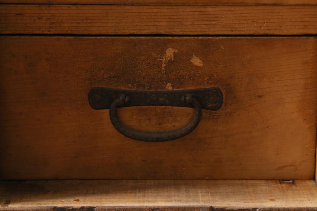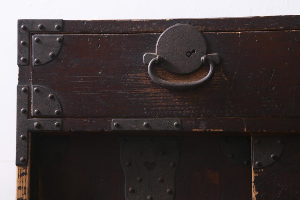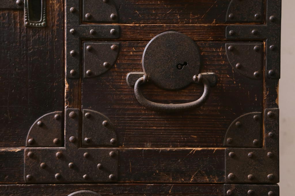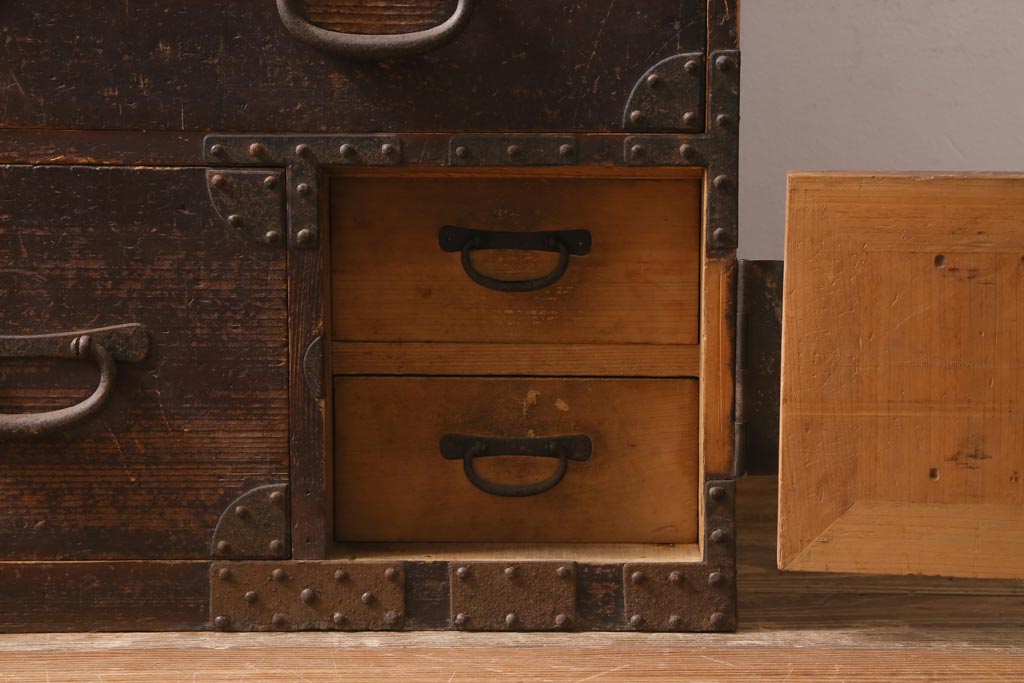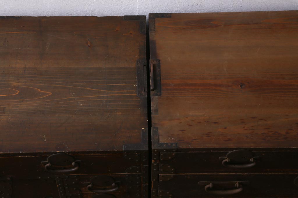 和箪笥> 帳場箪笥 > 【簡易リペア限定品】アンティーク建具 明治期 十字金具が印象的な重ね帳場箪笥(時代箪笥、重ね箪笥、収納箪笥、整理箪笥)(R-038548)
