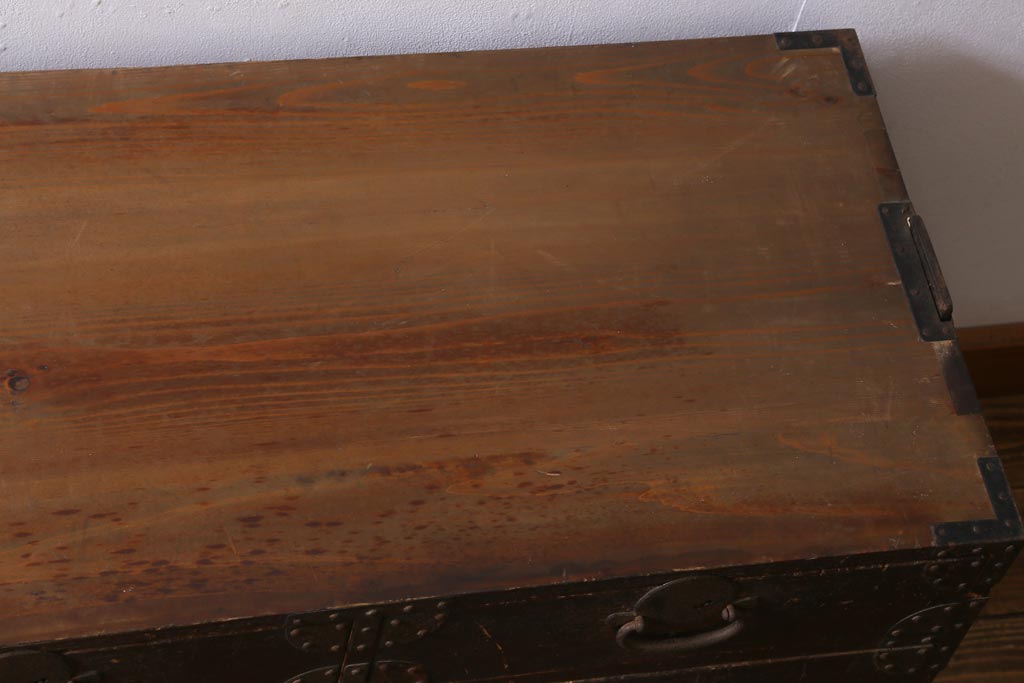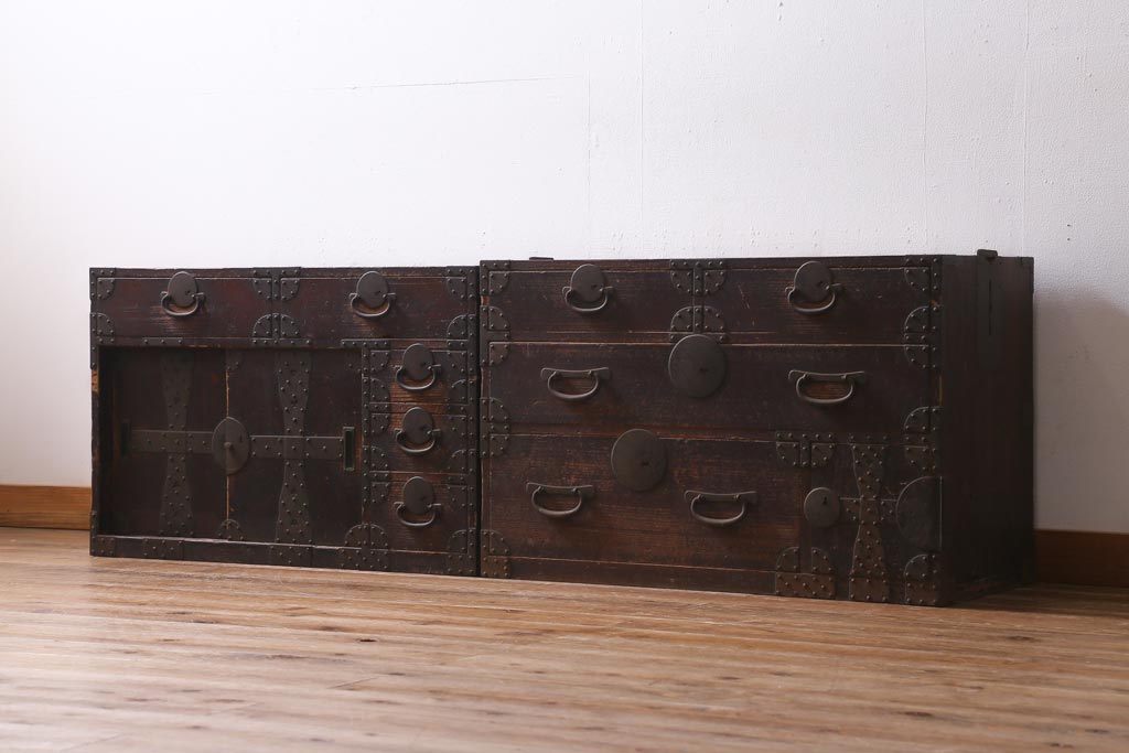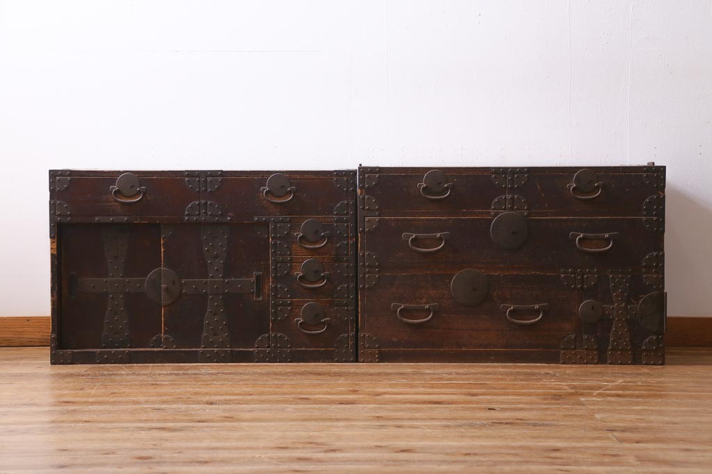 【簡易リペア限定品】アンティーク建具 明治期 十字金具が印象的な重ね帳場箪笥(時代箪笥、重ね箪笥、収納箪笥、整理箪笥)(R-038548)