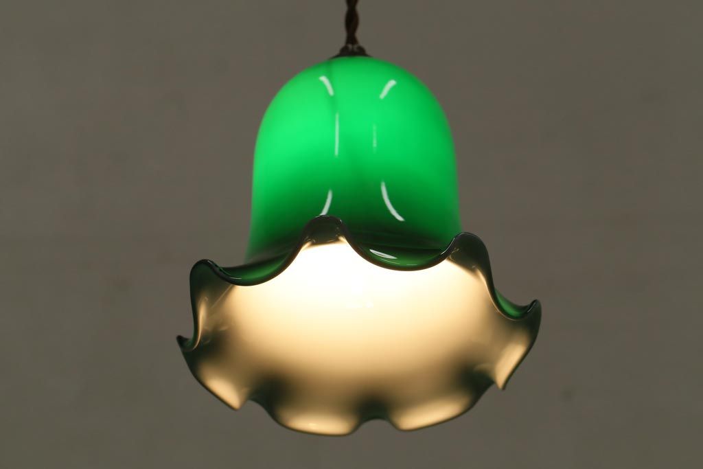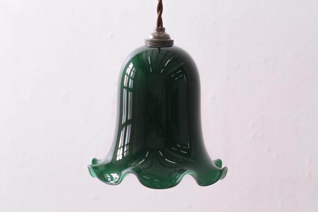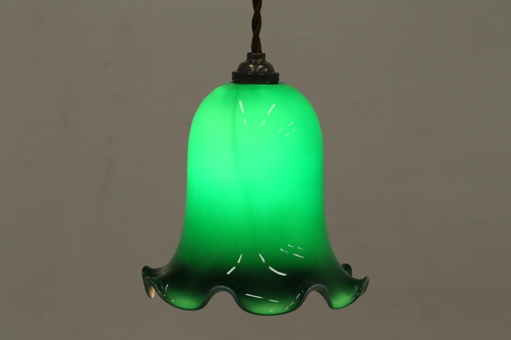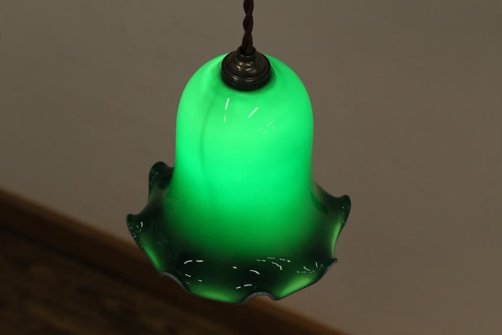 ヴィンテージ照明 イギリスビンテージ 鮮やかなグリーンが目を引くペンダントライト(天井照明、吊り下げ照明)(R-038488)